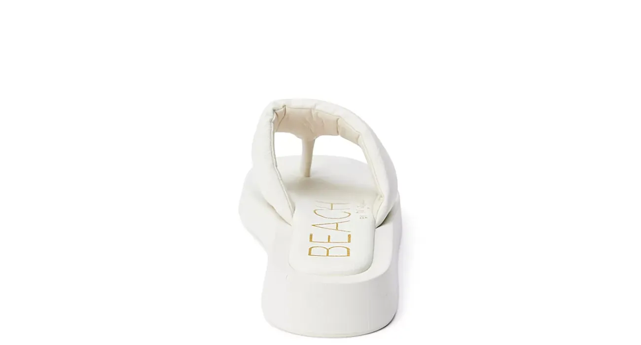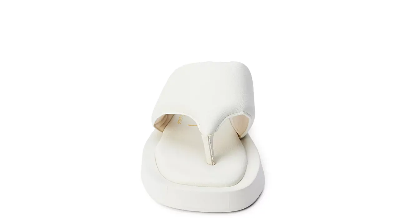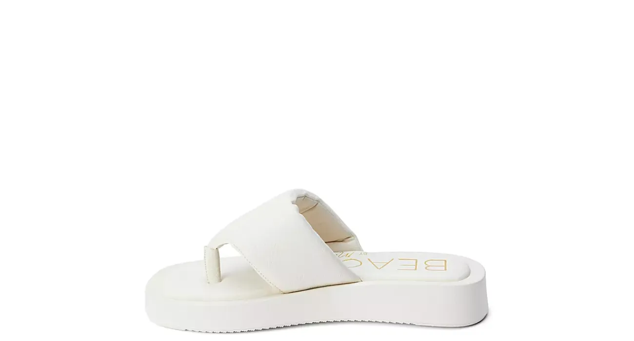 Bring in spring, softly, in the Izzie women’s sandal from Beach by Matisse. Featuring a puffy synthetic upper with a square toe for extra style, this thong sandal comes in neutral and pastel colors. The insole cushions your foot while the 1 1/4″ sole adds durability.