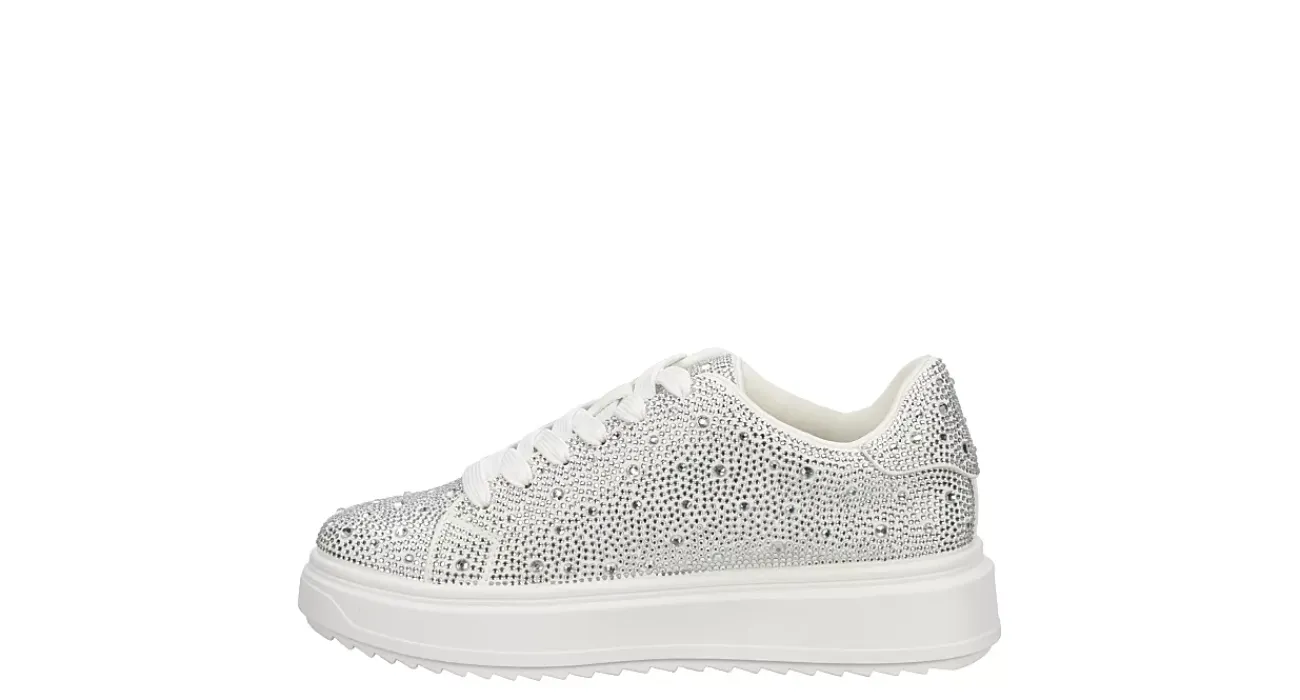 Have a fun night out in the Jeena-R women’s sneaker from madden girl. Featuring a rhinestone upper with a padded collar for comfort, this lace-up sneaker brings the bling. The jersey lining soothes your foot while the 1″ platform adds the height you love.