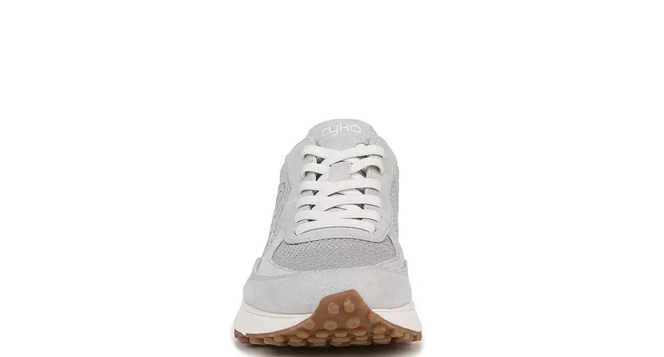 Jump on the retro style trend in the Jog On women’s slip-on sneaker from Ryka. With a stretch fabric & faux suede upper featuring a comfy padded heel, this stretch laced shoe also has a rear pull tab for easy entry. The anatomical insole includes extra heel & arch support while the compression-molded outsole offers durability.