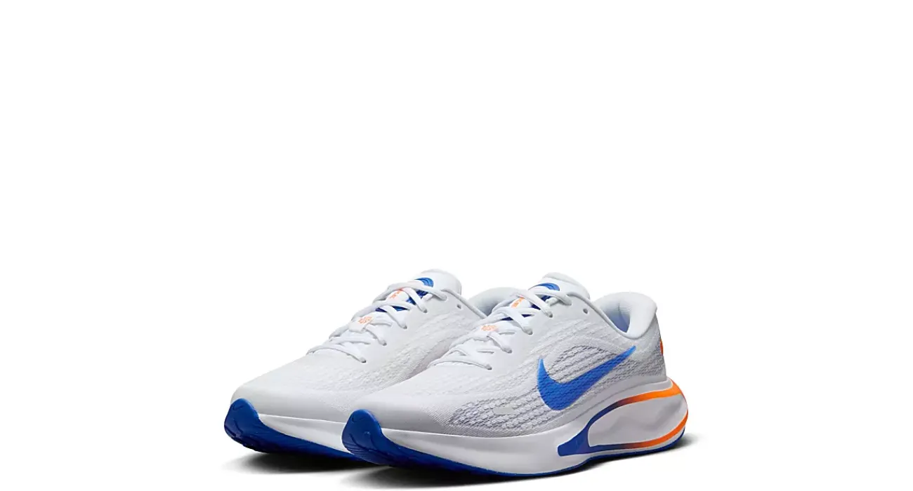 The road ahead may be unforgiving, but the Journey Run women’s running shoe from Nike makes it enjoyable. Featuring a breathable engineered mesh upper with a contoured, lightweight fit, this lace-up includes a padded collar & tongue for comfort. The footbed cushions and supports every step, while the outsole offers all the traction you’ll need.