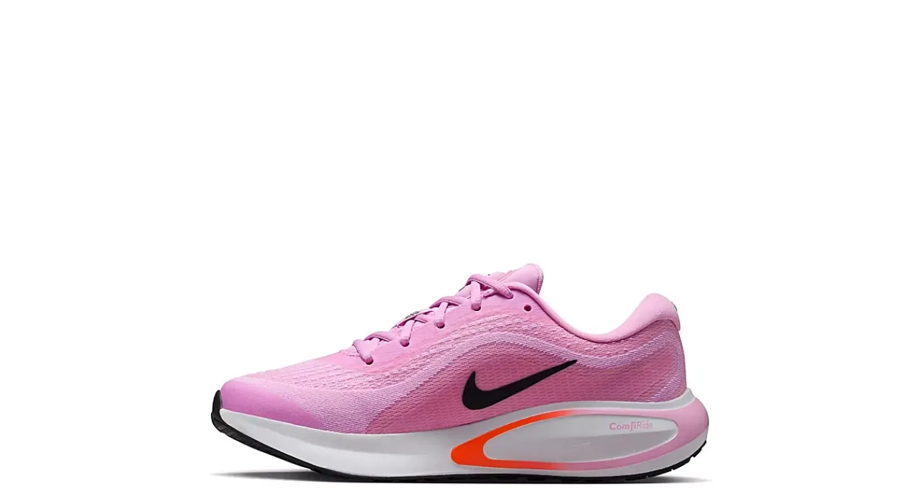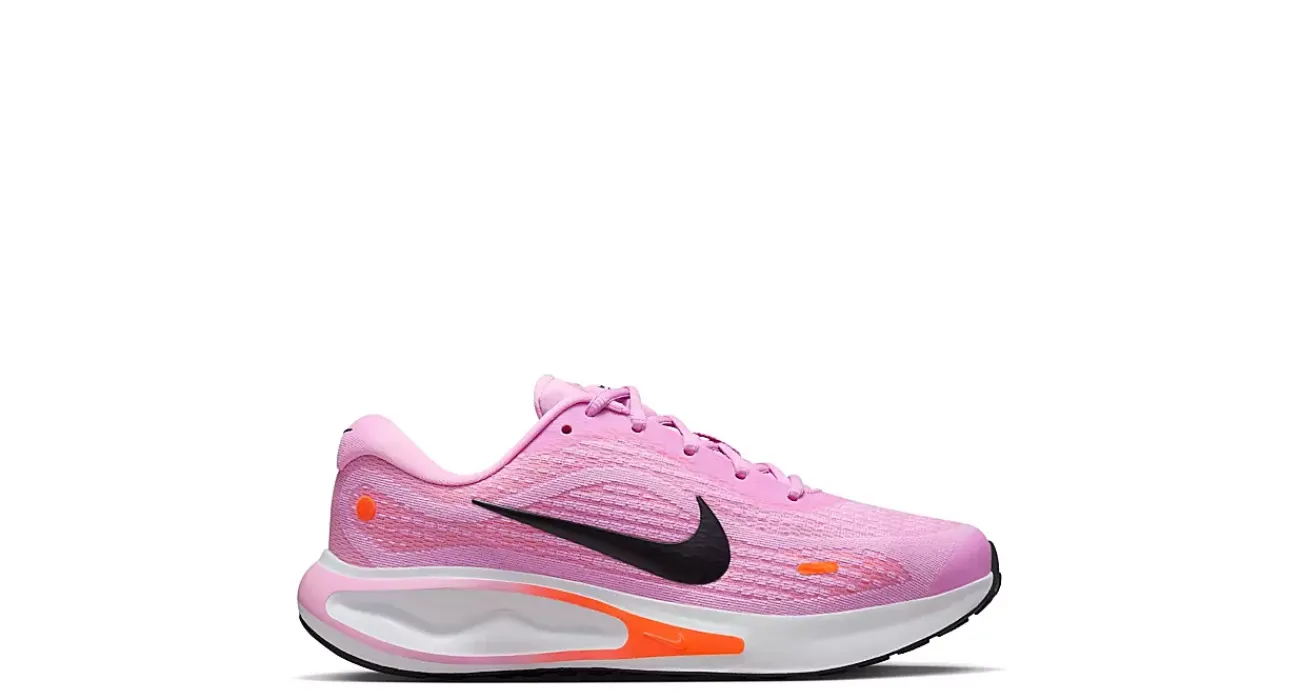 The road ahead may be unforgiving, but the Journey Run women’s running shoe from Nike makes it enjoyable. Featuring a breathable engineered mesh upper with a contoured, lightweight fit, this lace-up includes a padded collar & tongue for comfort. The footbed cushions and supports every step, while the outsole offers all the traction you’ll need.