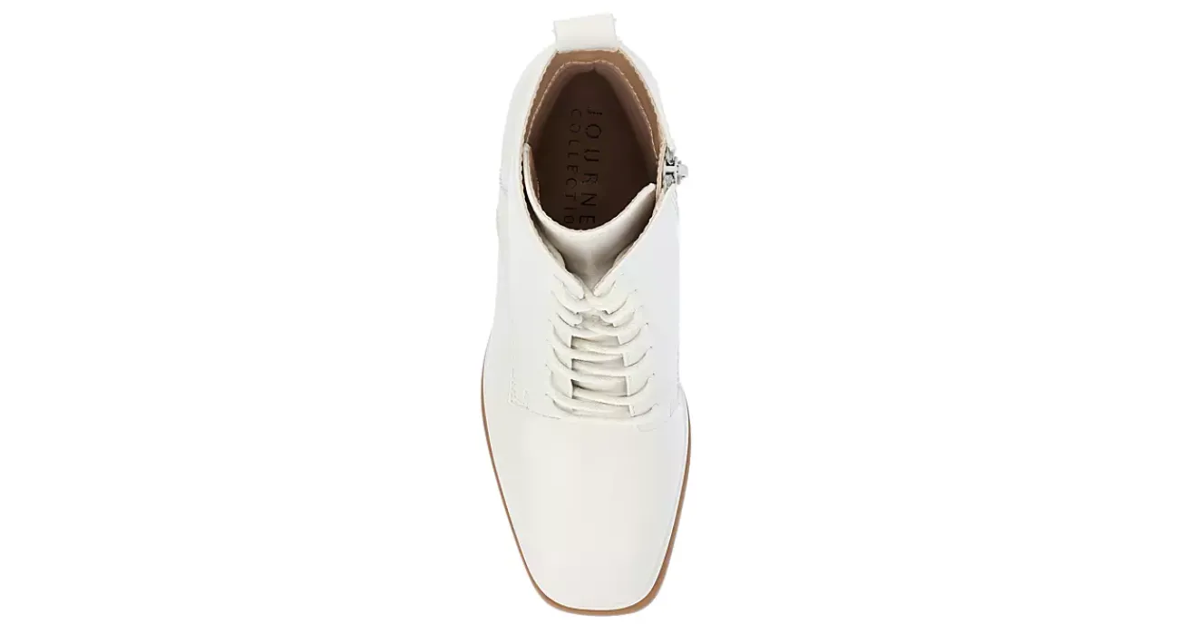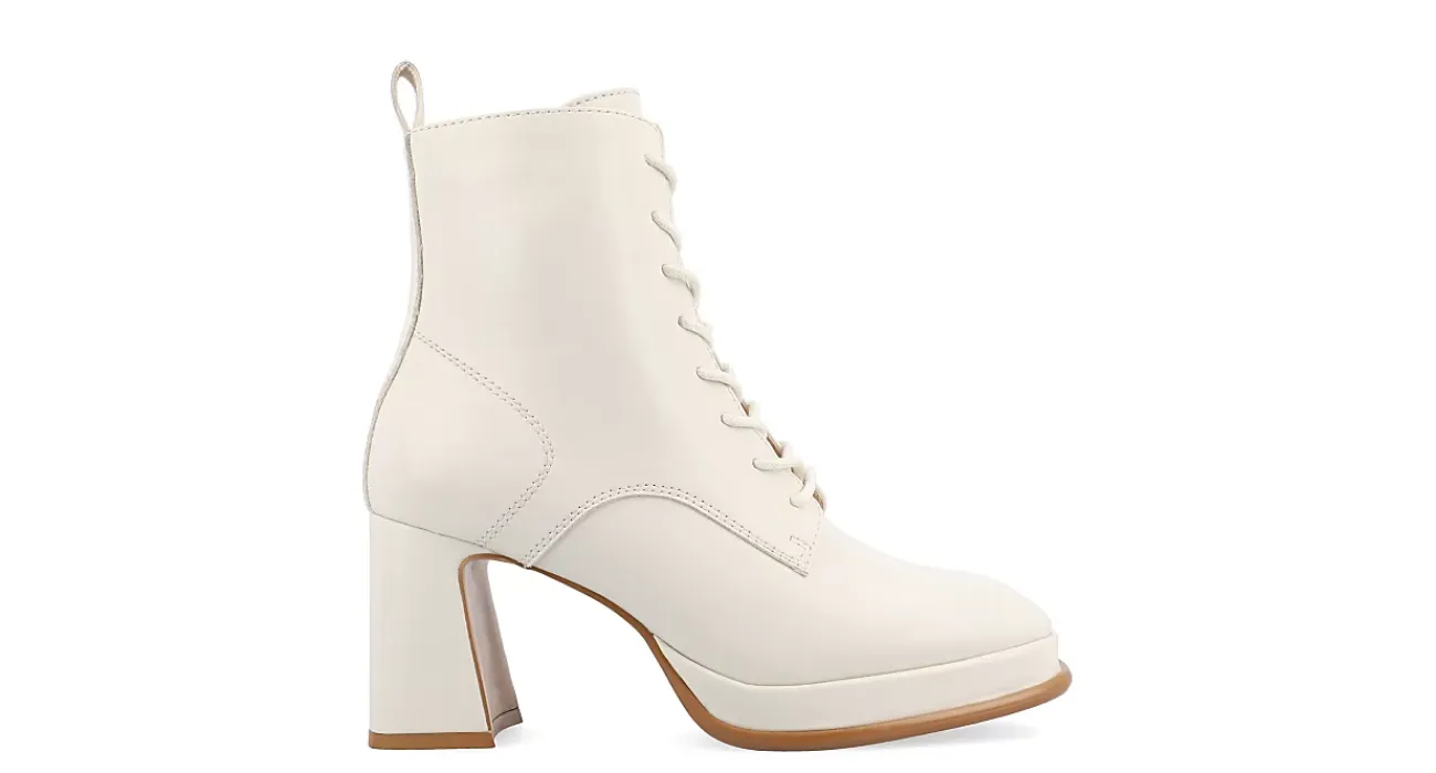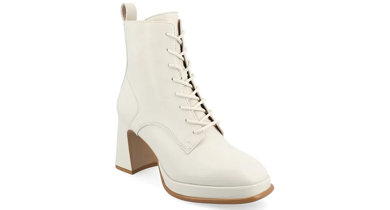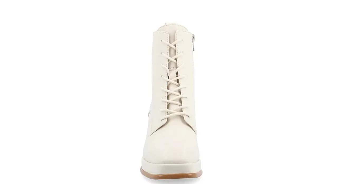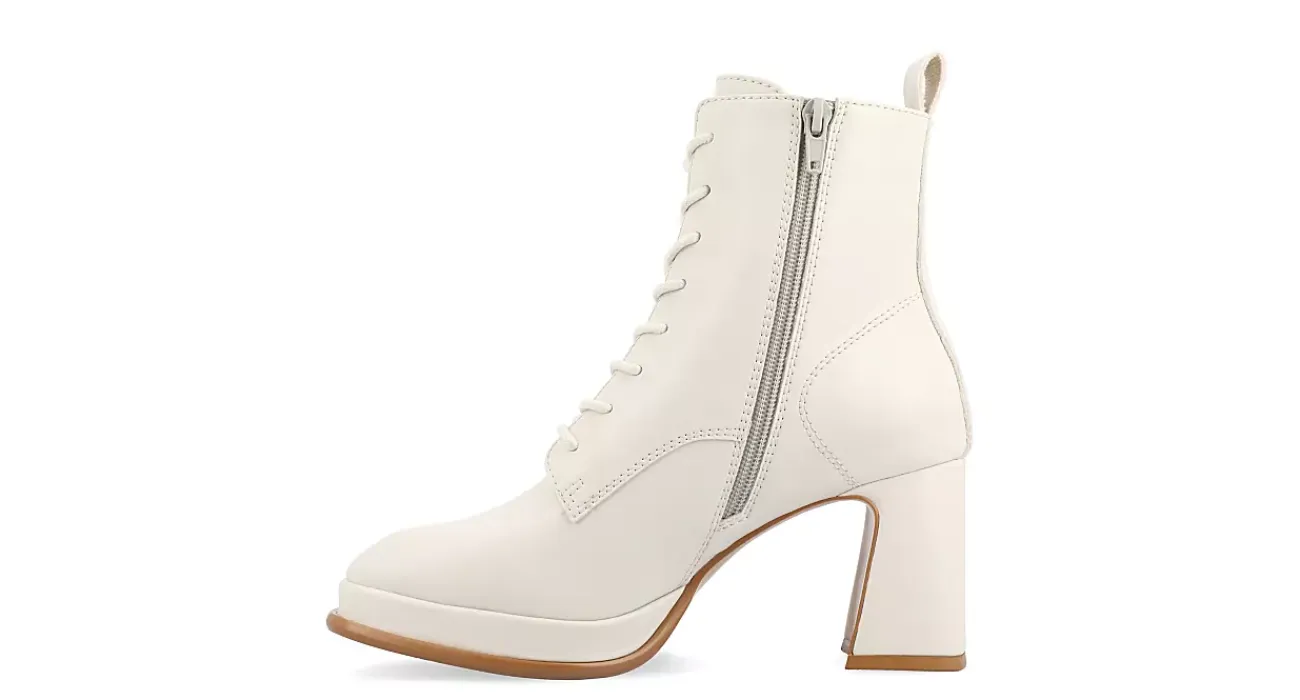 Soften up your tough girl style in the Kalindi Wide women’s bootie from Journee Collection. With a vegan leather upper featuring a square toe, this combat bootie is functional with a statement-making heel. The Memory Foam insole cushions every step while the platform adds stability along with height.