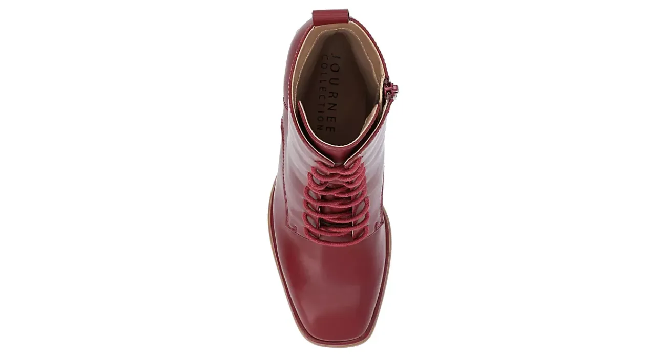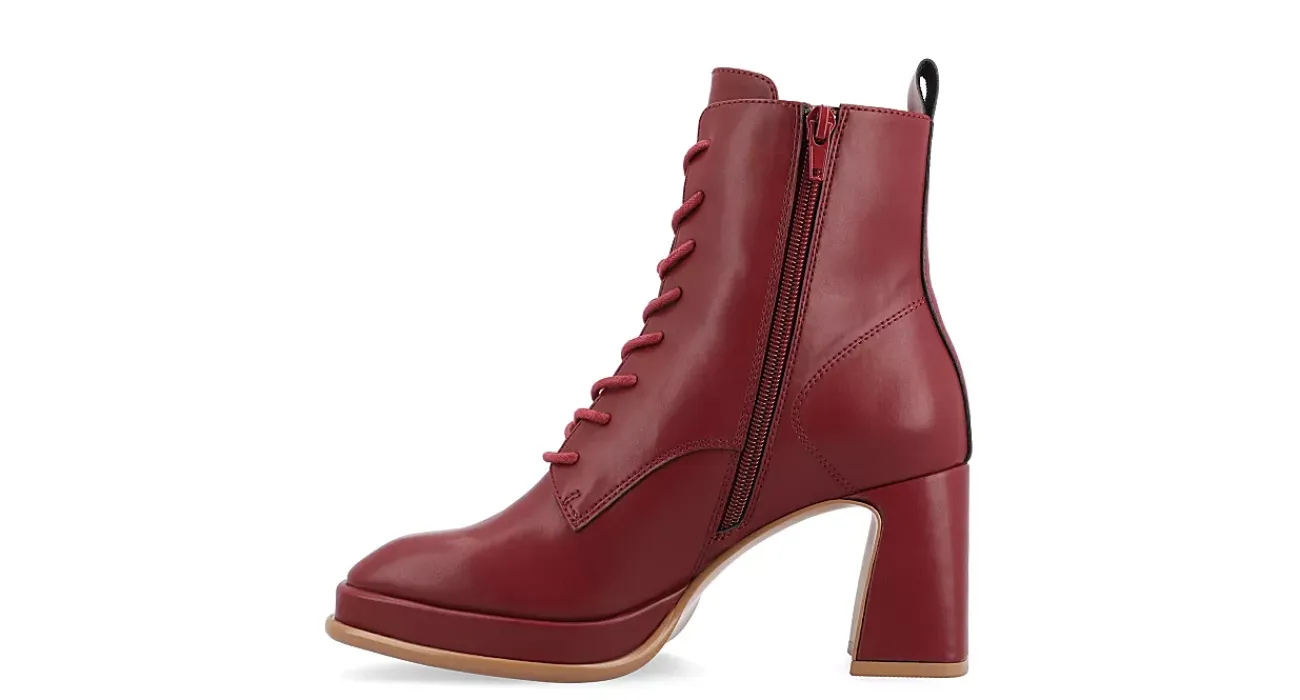 Soften up your tough girl style in the Kalindi Wide women’s bootie from Journee Collection. With a vegan leather upper featuring a square toe, this combat bootie is functional with a statement-making heel. The Memory Foam insole cushions every step while the platform adds stability along with height.