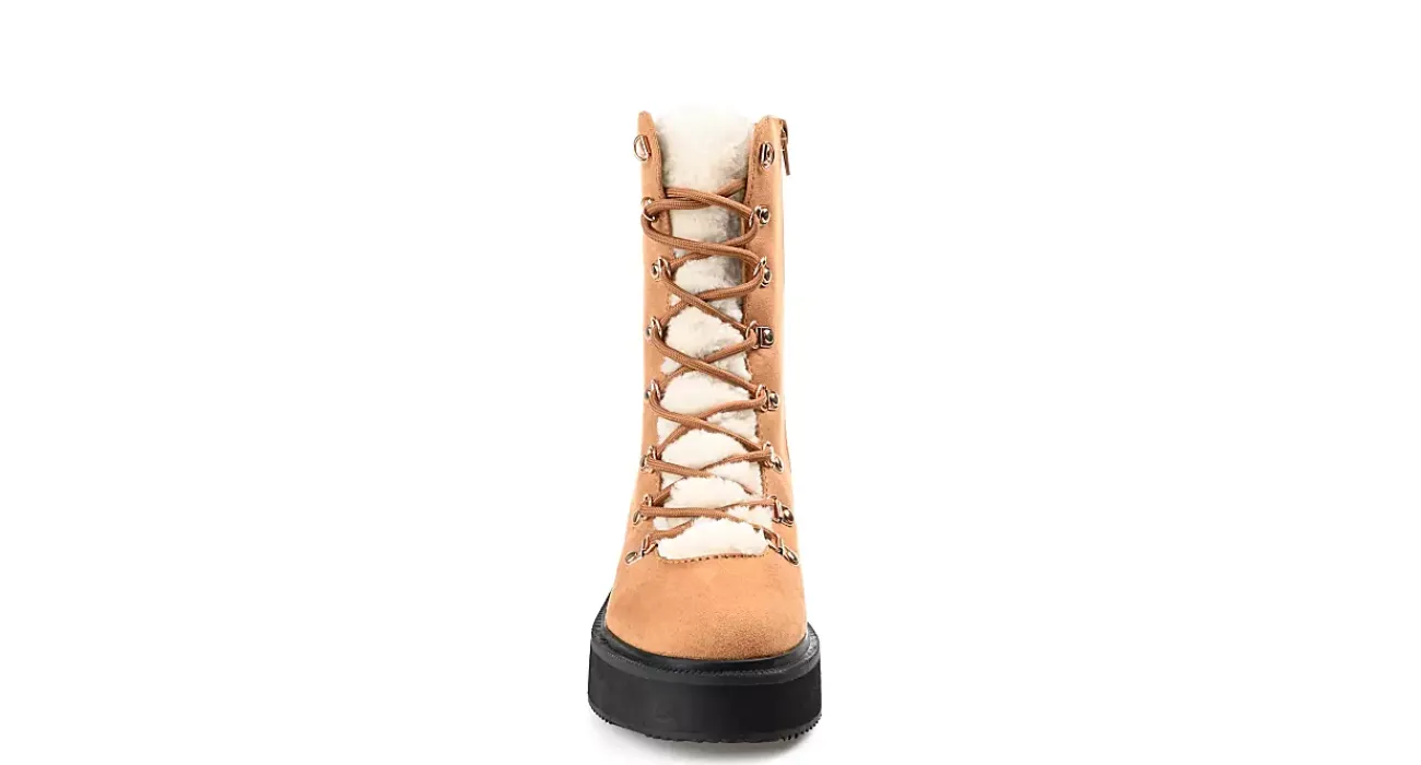 Get some shelter from winter in the Journee Collection Kannon boot. With a vegan leather upper featuring a lace-up front with speed hooks, this inside zip boot offers a faux fur contrast to combat the chill. The Tru Comfort Foam™ footbed cushions your steps while the platform heel adds treaded lift for steady walking.