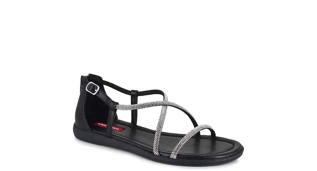 Add a hint of shine in the Keely women’s gladiator sandal from UNIONBAY. With a faux leather upper featuring rhinestone accents and an adjustable buckle strap for a secure fit, this rear zip sandal has a cool crisscross design. The footbed soothes your foot while the non-skid outsole is durable.