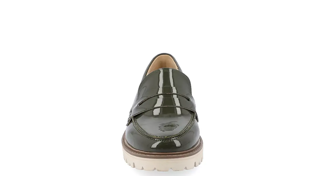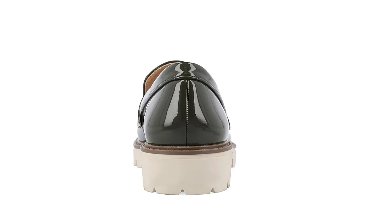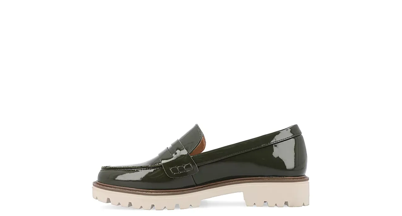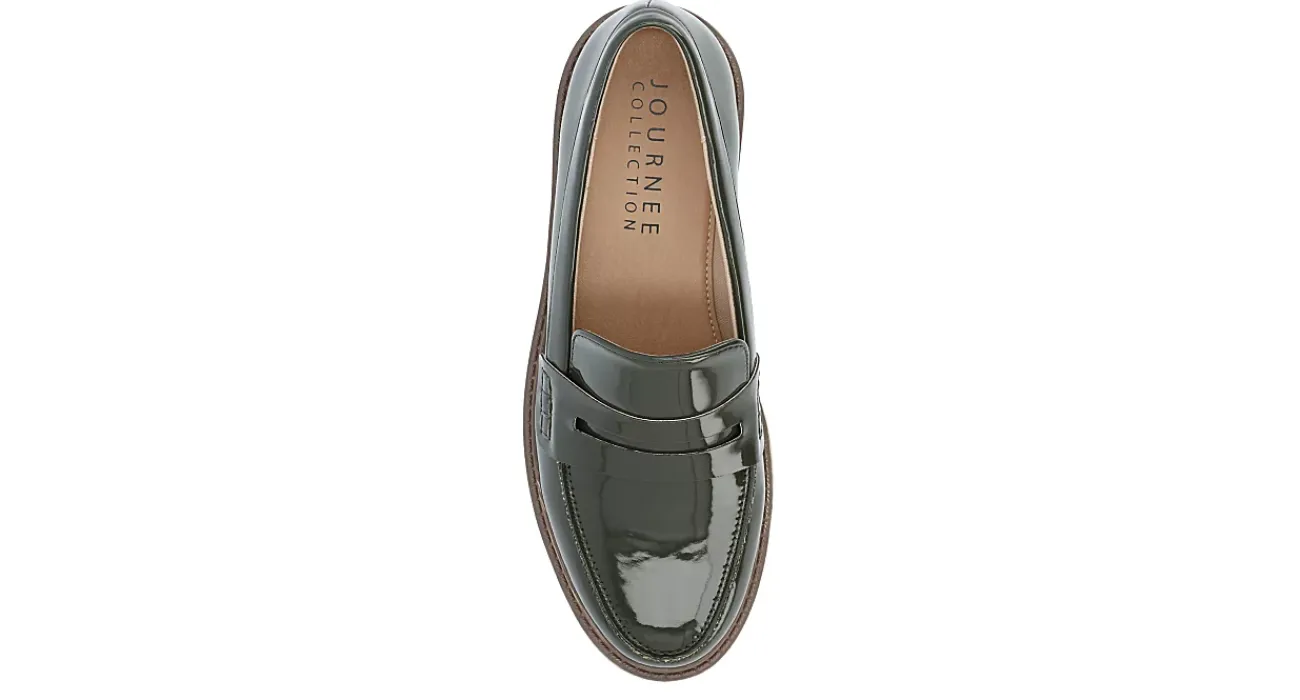 Finish off your ensemble with the Kenly Wide women’s penny loafer from Journee Collection. With a vegan patent leather upper featuring the signature slotted strap across the vamp, this moc toe loafer will bring a little edge to your classy style. The Tru Comfort Foam™ footbed and chunky outsole offer soft cushioning and durable traction, while the low block heel adds a slight lift.