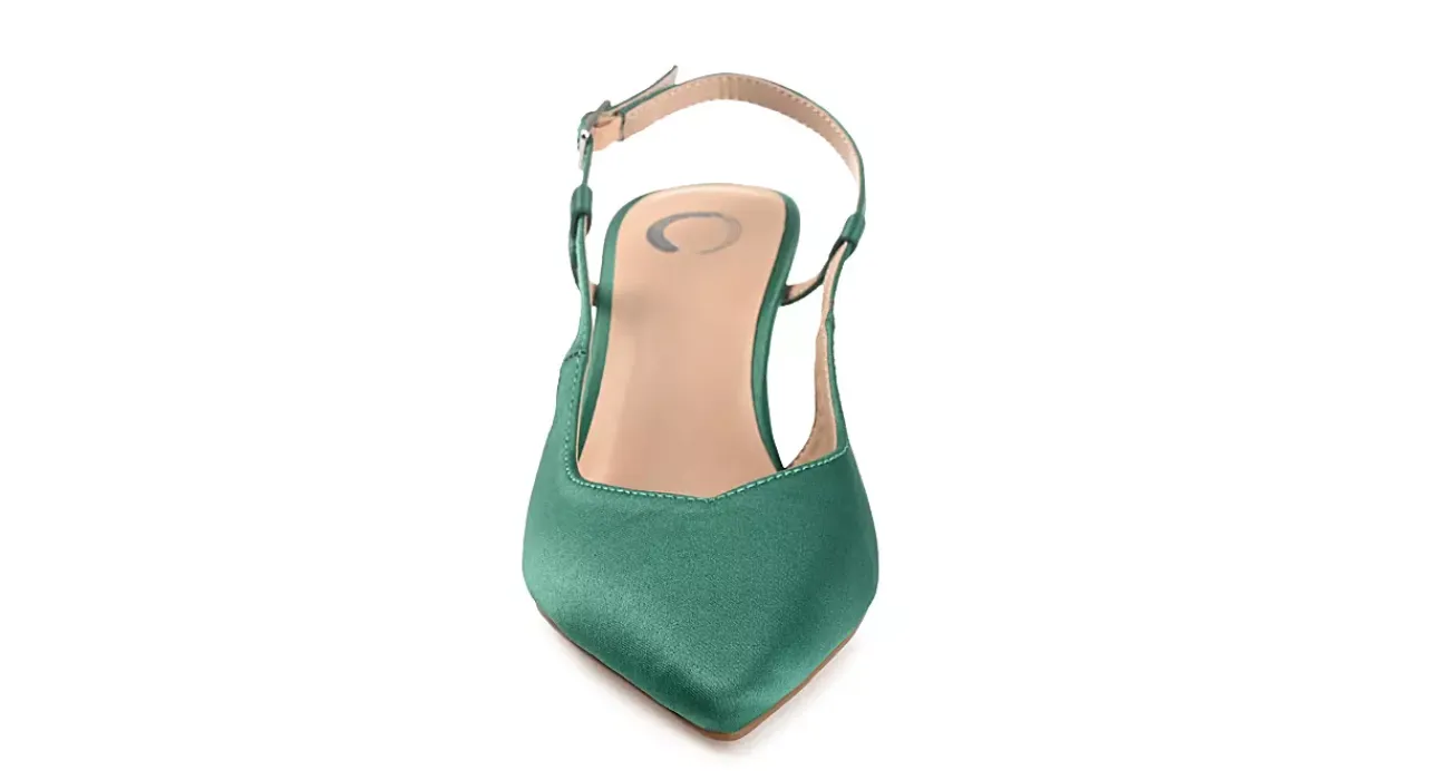 Step into style with the Knightly women’s pump from Journee Collection. With a chic satin fabric upper featuring a dainty slingback strap that adjusts for a perfect fit, this head-turning design, with its sleek pointed toe, is a stunning accessory at cocktail hour. A padded footbed cushions your feet, while the high stiletto heel creates a flattering lift.