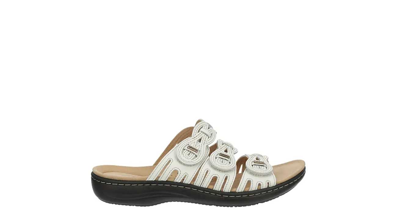 Live a little this summer in the Clarks Laurieann Ruby women’s slide sandal. With a leather upper featuring three interwoven straps for a secure fit, this riptape sandal is perfect for travel and exploring. The Ultimate Comfort footbed cushions with OrthoLite® breathability while the lightweight outsole improves flexibility.