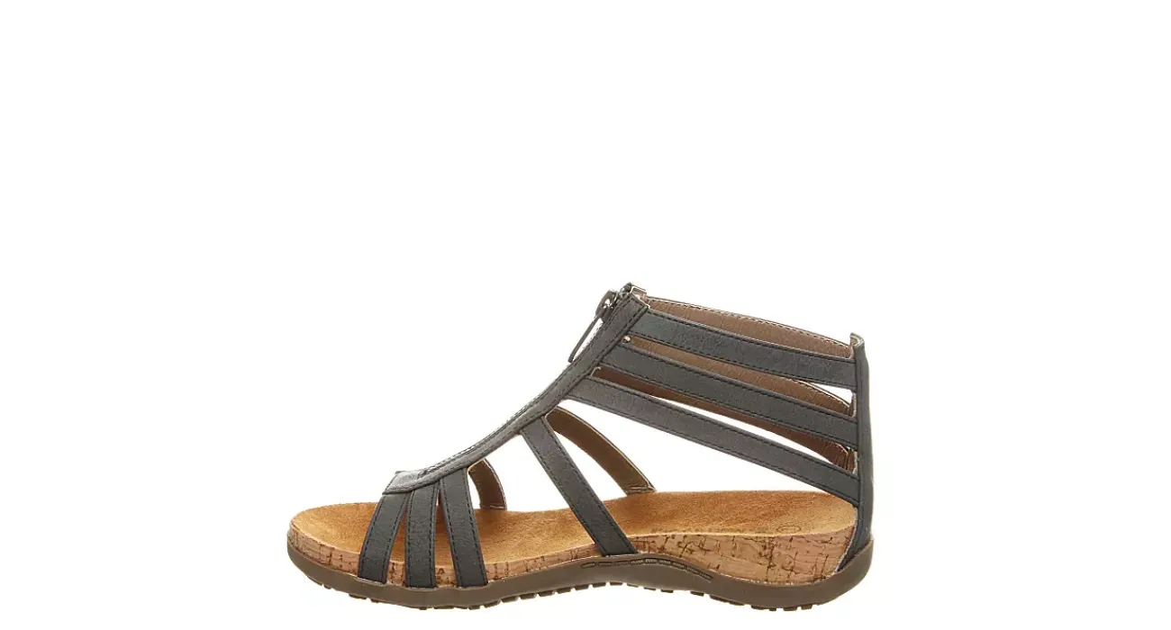This strappy beauty elevates your style factor – the Bearpaw Layla II Wide women’s sandal. The front Bearpaw® zipper closure is chic as well as convenient, while the micro-suede contoured footbed cradles your feet in softness. Don’t forget the cork-wrapped EVA midsole paired with the sculpted TPR sole, a winning combo for walking and exploring the town.