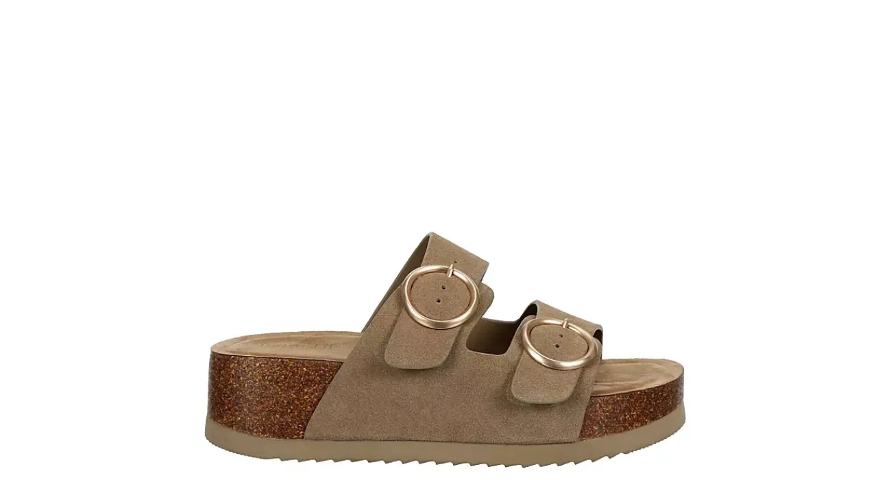 Lift your style in the Layla women’s sandal from Bjorndal. With a faux suede upper featuring a dual buckle strap for a custom fit, this slip-on sandal pairs well with jeans or a casual dress. The cushioned footbed & 2″ platform midsole cradle your foot, while the durable outsole provides excellent traction wherever you go.