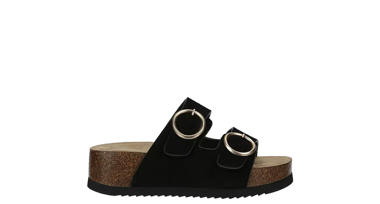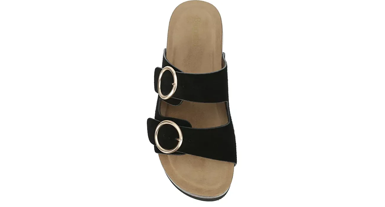 Lift your style in the Layla women’s sandal from Bjorndal. With a faux suede upper featuring a dual buckle strap for a custom fit, this slip-on sandal pairs well with jeans or a casual dress. The cushioned footbed & 2″ platform midsole cradle your foot, while the durable outsole provides excellent traction wherever you go.