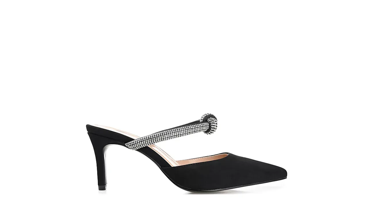 Minimalistic yet elegant, the Lunna women’s pump from Journee Collection is an absolute head-turner. With a vegan leather upper featuring a knotted rhinestone strap for a beautiful finish, this pump, with its pointed-toe design and delicate stiletto heel, works for the office or an evening out. A padded footbed soothes your feet, while the synthetic outsole provides excellent grip.