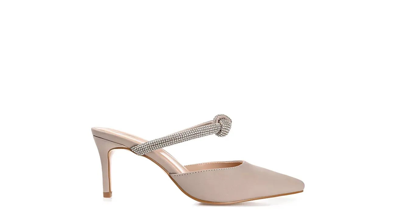 Minimalistic yet elegant, the Lunna women’s pump from Journee Collection is an absolute head-turner. With a vegan leather upper featuring a knotted rhinestone strap for a beautiful finish, this pump, with its pointed-toe design and delicate stiletto heel, works for the office or an evening out. A padded footbed soothes your feet, while the synthetic outsole provides excellent grip.