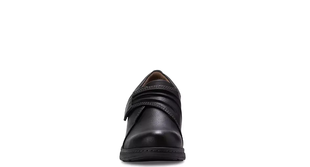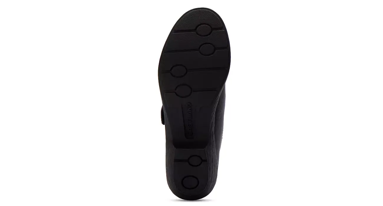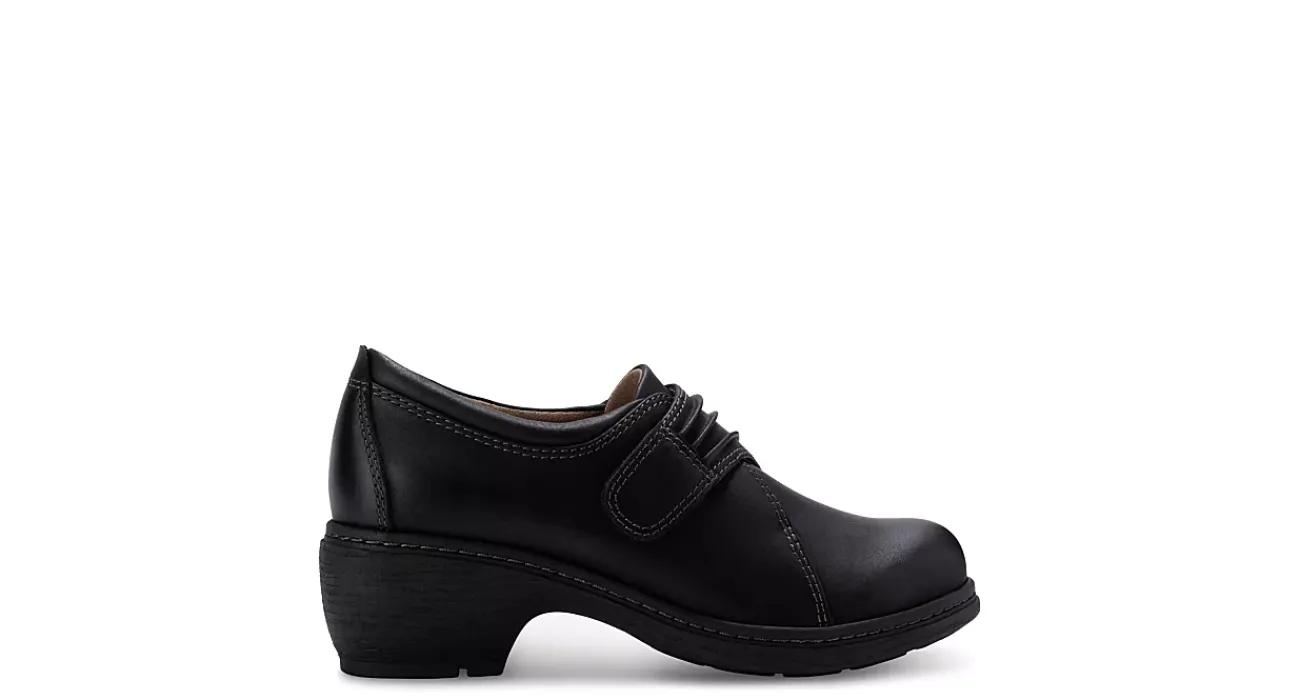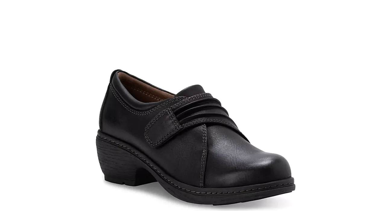 Elevate everyday style in the Maggie Slip-On women’s boot from Eastland. Featuring a faux leather upper with handstitched details that create pleats, this hook & loop strap shoe also has a soothing fabric lining. The cushy Memory Foam insole is removable while the slip-resistant sole has that stacked block heel for lift.