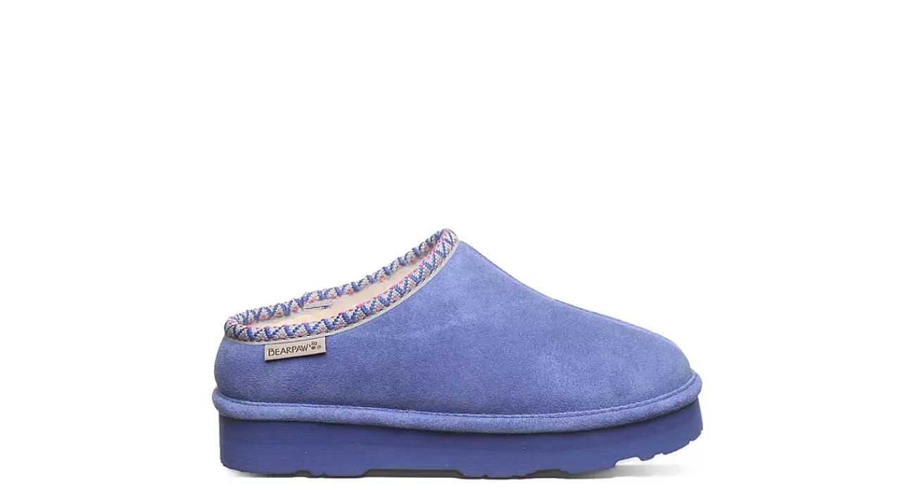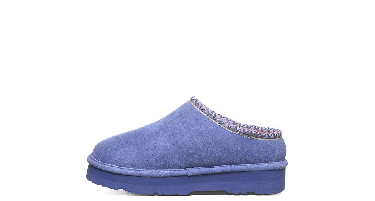 Go wherever you need to go in the Martis women’s platform slipper from Bearpaw. With a suede upper treated with BearCoat® Rain and Stain repellent featuring a warm wool blend lining, this slipper cradles your foot. The removable wool blend footbed comforts, while platform rubber outsole adds height for errands or just lounging around the house.