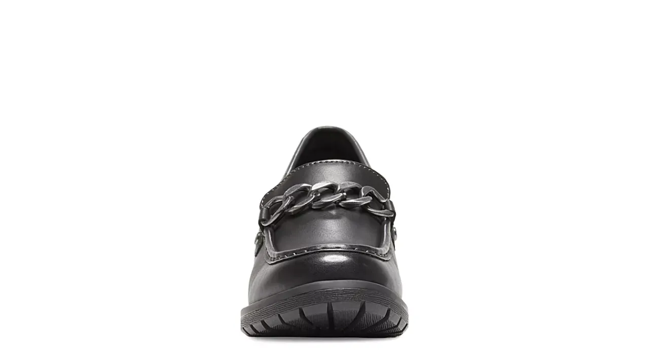 Step into the Nora women’s loafer from Eastland and get out there. With a synthetic upper accented by a chainlink, these slip-on loafers feature a block heel for edgy lift. The Memory Foam insole supports and cushions while the rubber lug sole offer plenty of traction.
