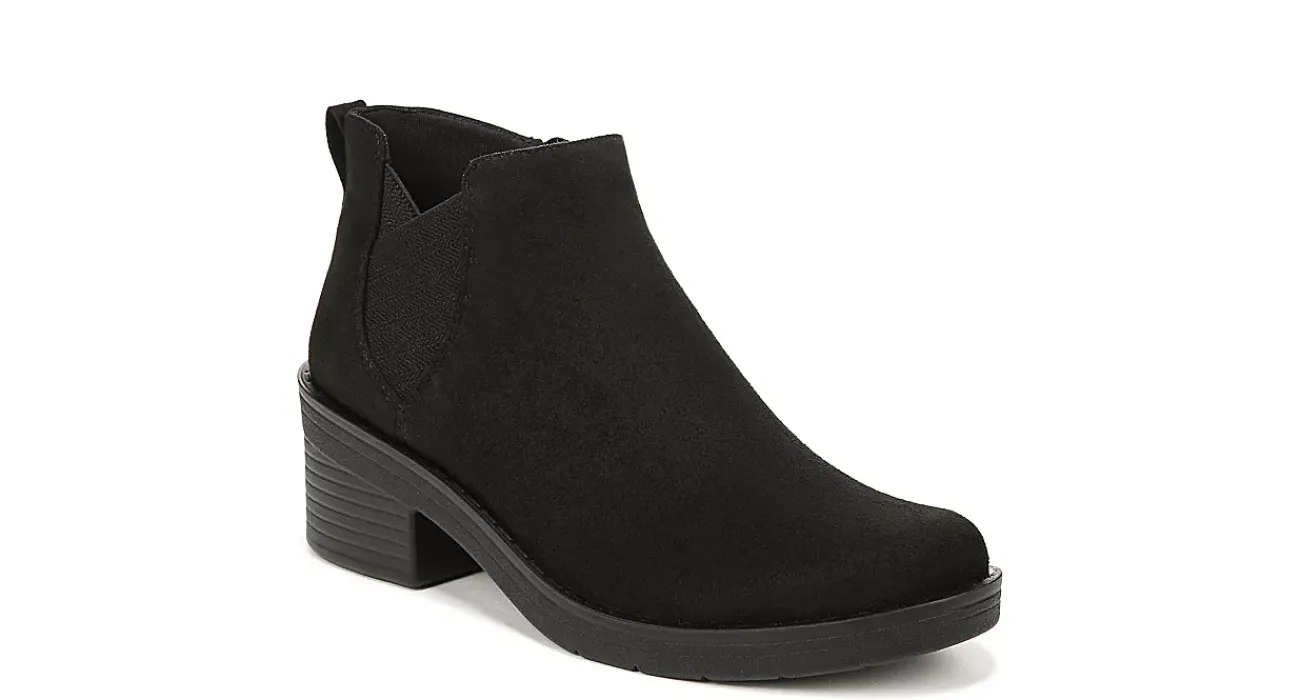 Ensure timeless elegance with the Ontario women’s Chelsea boot from BZees. With a stretch fabric upper featuring a stretch gore for an easy fit, this inside zipper boot has BZEES Cloud Technology for a weightless feel. The anatomical Free Foam footbed with SoCush Memory Foam arch support and an algae-infused BLOOM™ foam layer cushions her foot, while the stacked block heel offers a subtle lift.