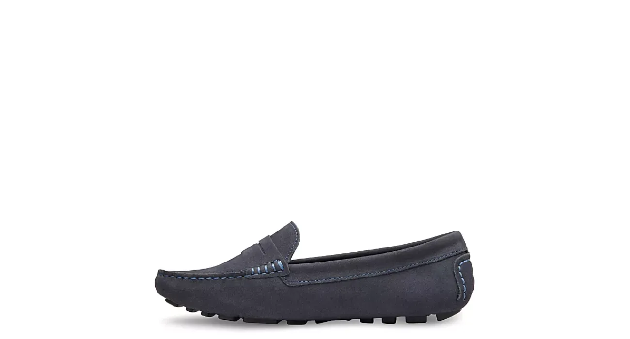 Slip into comfortable style with the Eastland Patricia loafer. The leather upper has contrast stitching detailing with an overlay vamp accent for a textured, modern design. The cushioned insole will comfort your foot while you pair this loafer with both casual or dressier outfits.