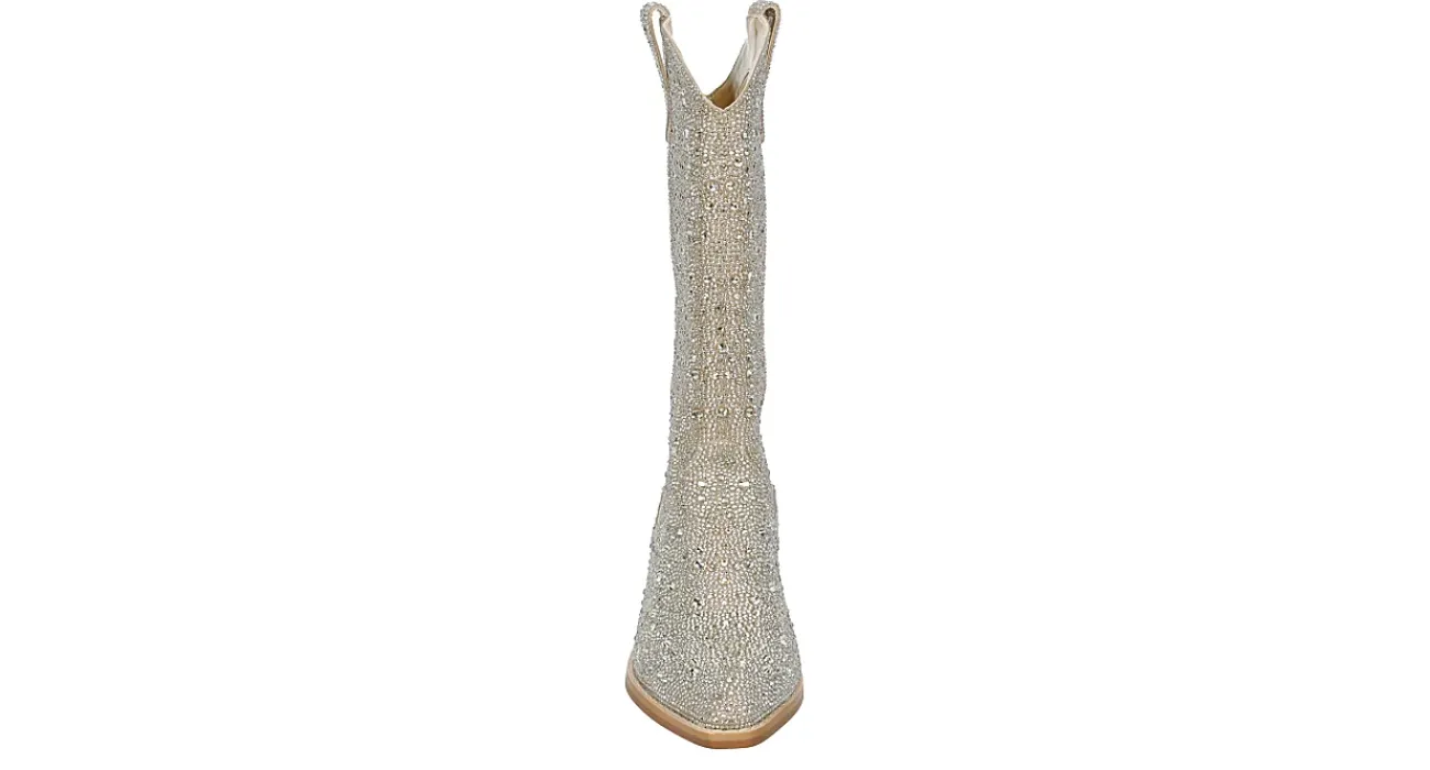 Round up the ranch appeal of the madden girl Redford-R Wide Calf Western boot. With a rhinestone upper featuring an almond toe and different-sized sparkles for added style, these pull-on boots easily complete your sassy look. The synthetic or fabric lining soothes your foot while you enjoy the subtle lift of the 1 3/4″ block heel.
