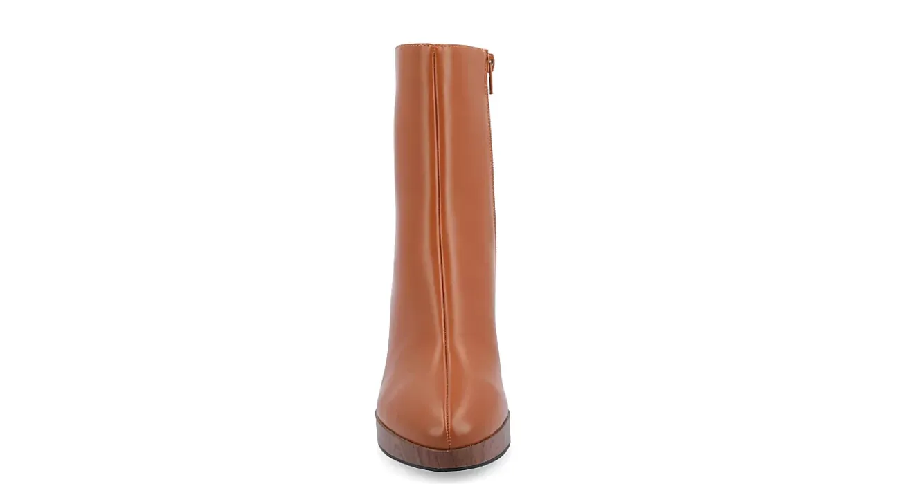 Smooth out your look in the Romer Wide women’s bootie by Journee Collection. With a vegan leather upper featuring an almond toe, this ankle boot has a center seam and faux wood accents for extra style. The Memory Foam insole cushions every step while the platform & block heel offer more than enough height.