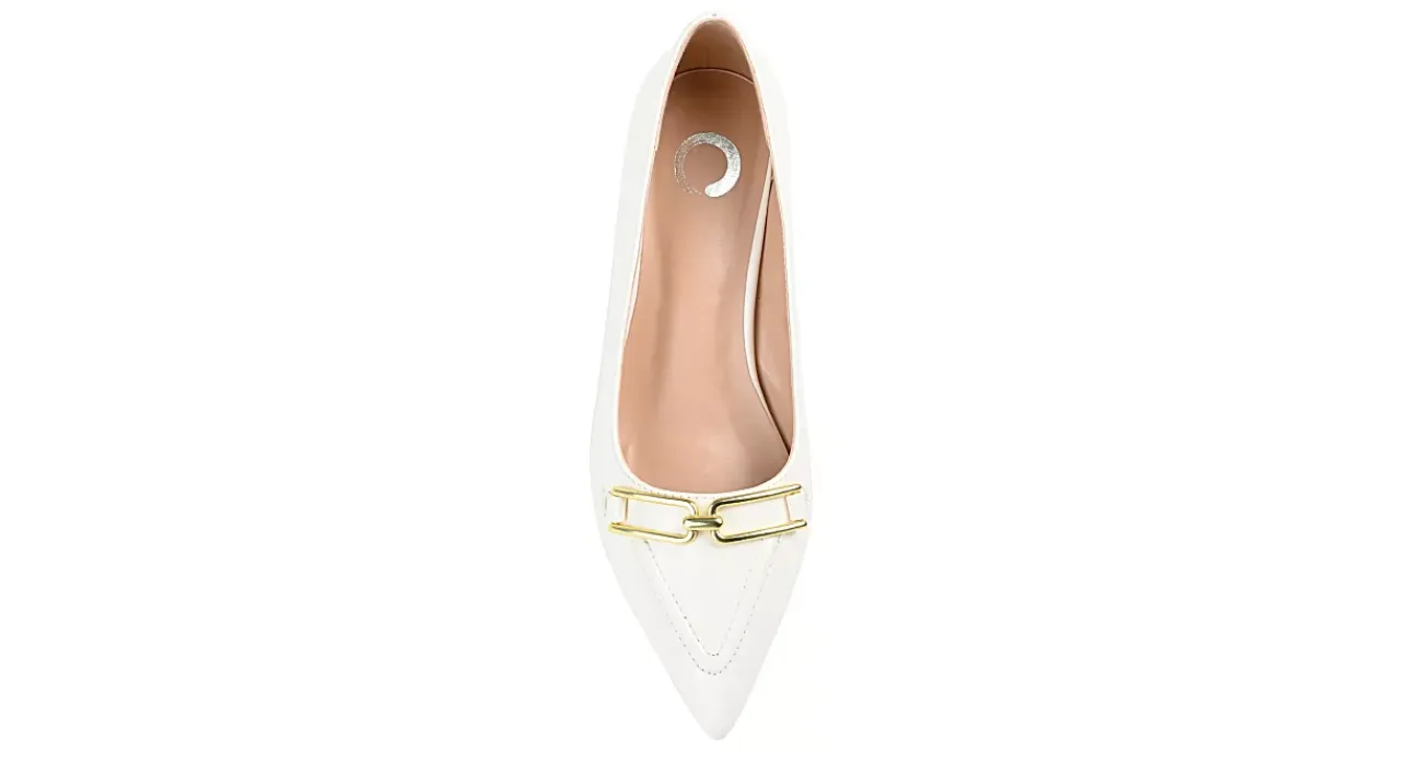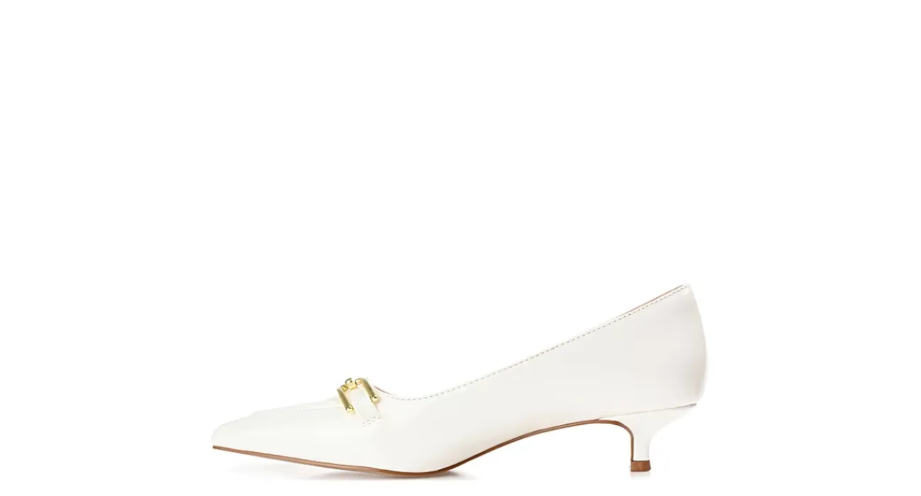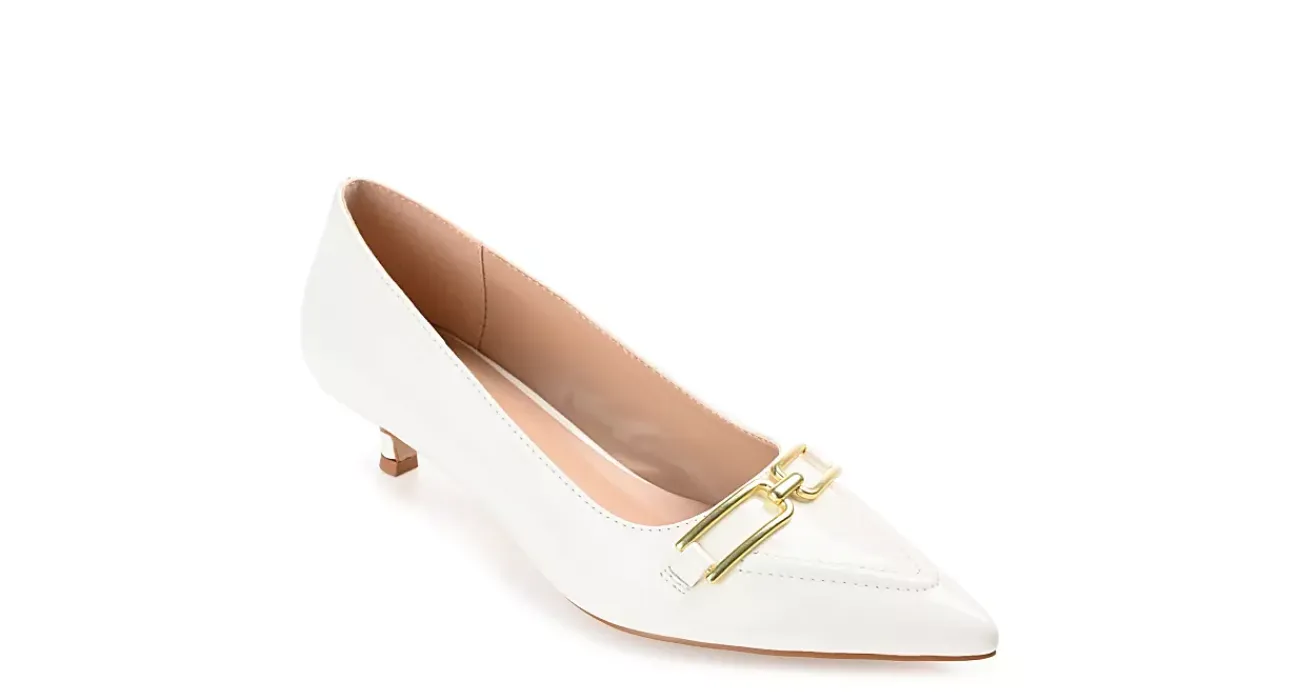 Give your office ensemble some bling with the Rumi women’s pump from Journee Collection. With a vegan patent leather upper featuring a trendy hardware detail, this pointy-toe pump will definitely have all eyes on you. A padded footbed comforts your feet, while the 1½” kitten heel offers just enough lift without being difficult to walk on.
