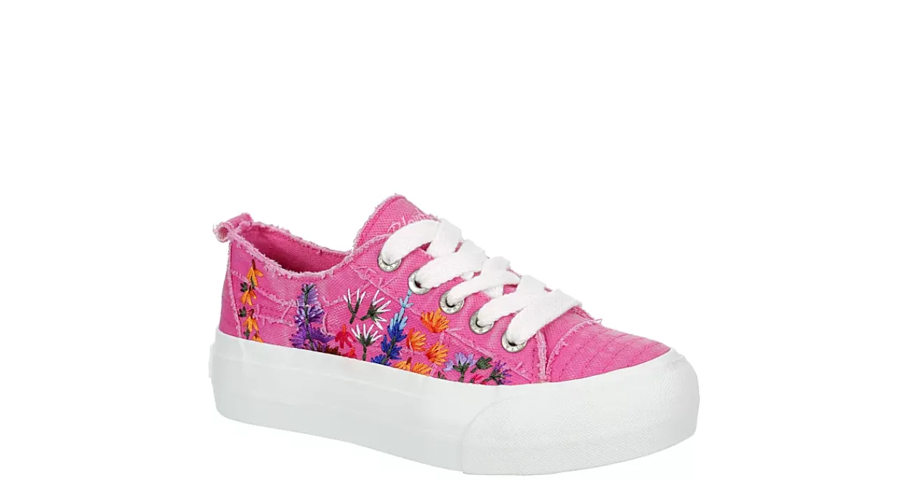 Style a cute picture with the Sadie-Sun women’s platform sneaker from Blowfish Malibu. Featuring a canvas upper featuring frayed trim and embroidered details, this sneaker pairs well with jeans or leggings and a favorite tee. The BLOOM algae-based footbed cushions your foot, while the elevated platform provides just enough lift.