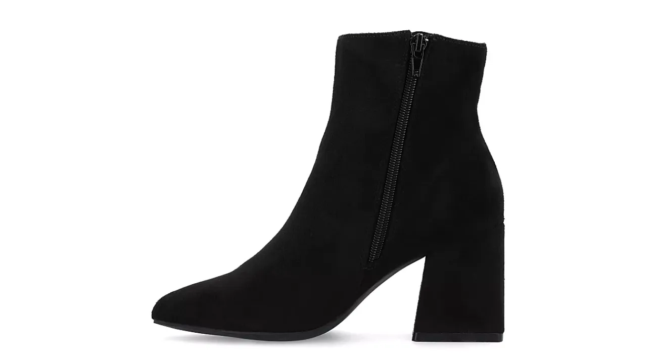 Fashion your look for round-the-clock style in the Sorren women’s bootie from Journee Collection. With a vegan leather upper featuring a sleek pointed toe, this boot dresses up whatever you wear. The Memory Foam insole cushions every step while the covered block heel adds stable lift.
