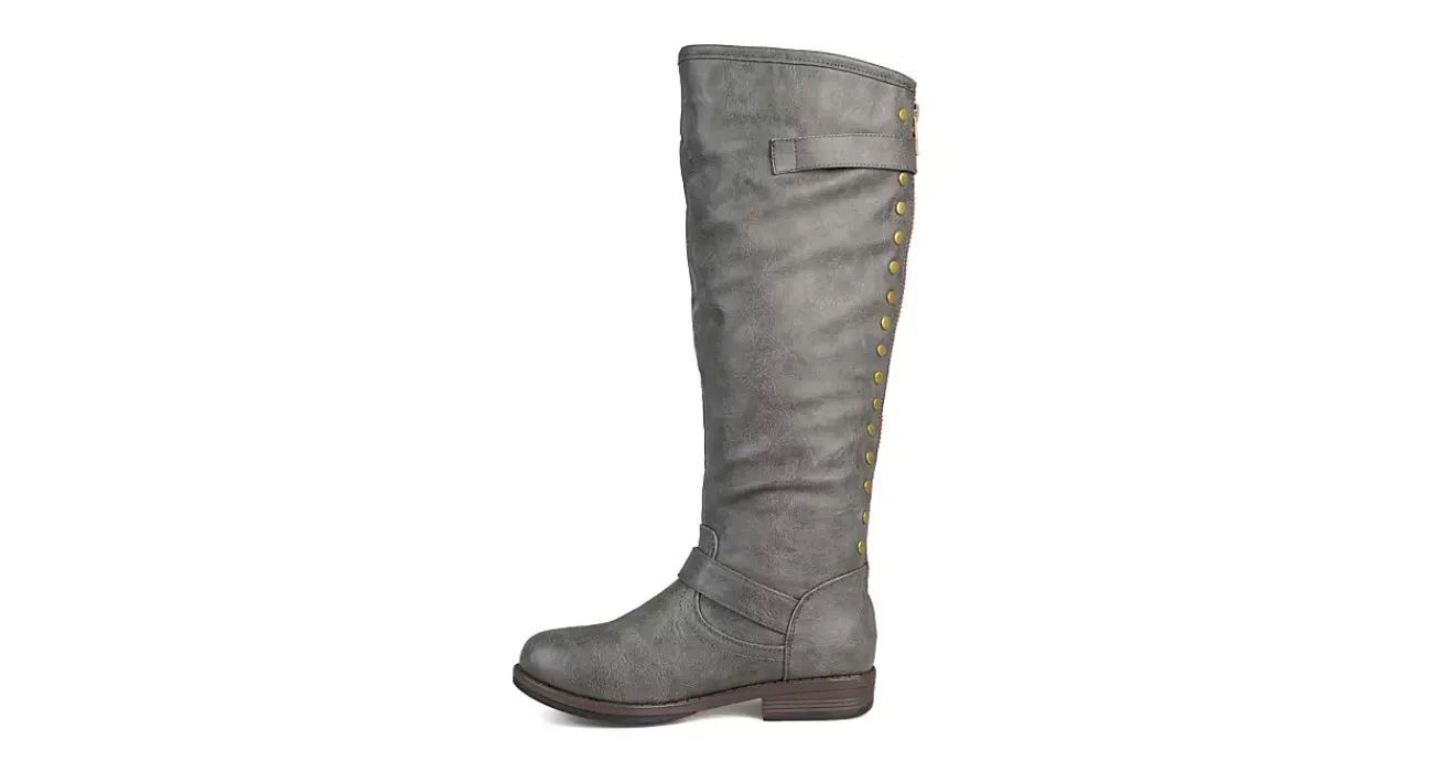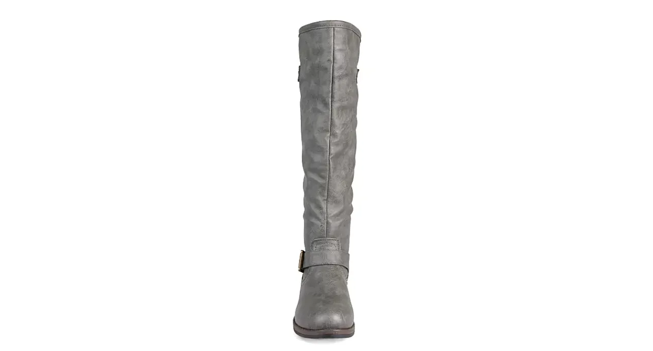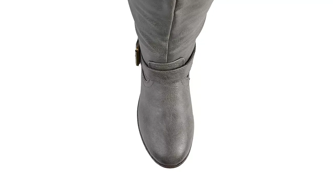 Not your typical riding boot is the Journee Collection Spokane Extra Wide Calf women’s tall boot. With its contrast back zipper and faux leather upper accented by buckle straps at the ankle and calf, this stylish boot is sure to become a favorite this fall. Take a turn around the orchard on the cushioned heel and 1″ block heel.