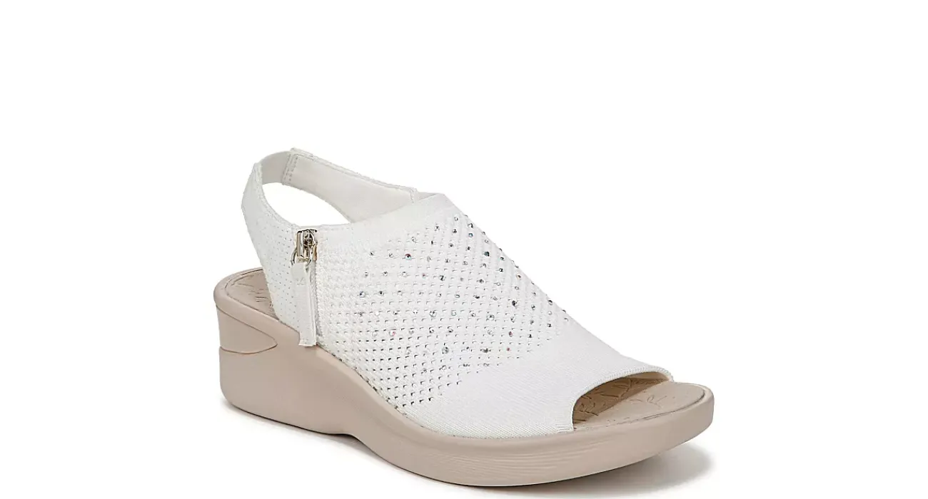 Command attention in the LifeStride Starlet wedge sandal. Featuring a stretch knit upper with rhinestone details, this peep toe slingback is easy on with a side zipper. BZEES Air Step Technology and FreeFoam™ comfort include cushy arch support with a nearly weightless feel.