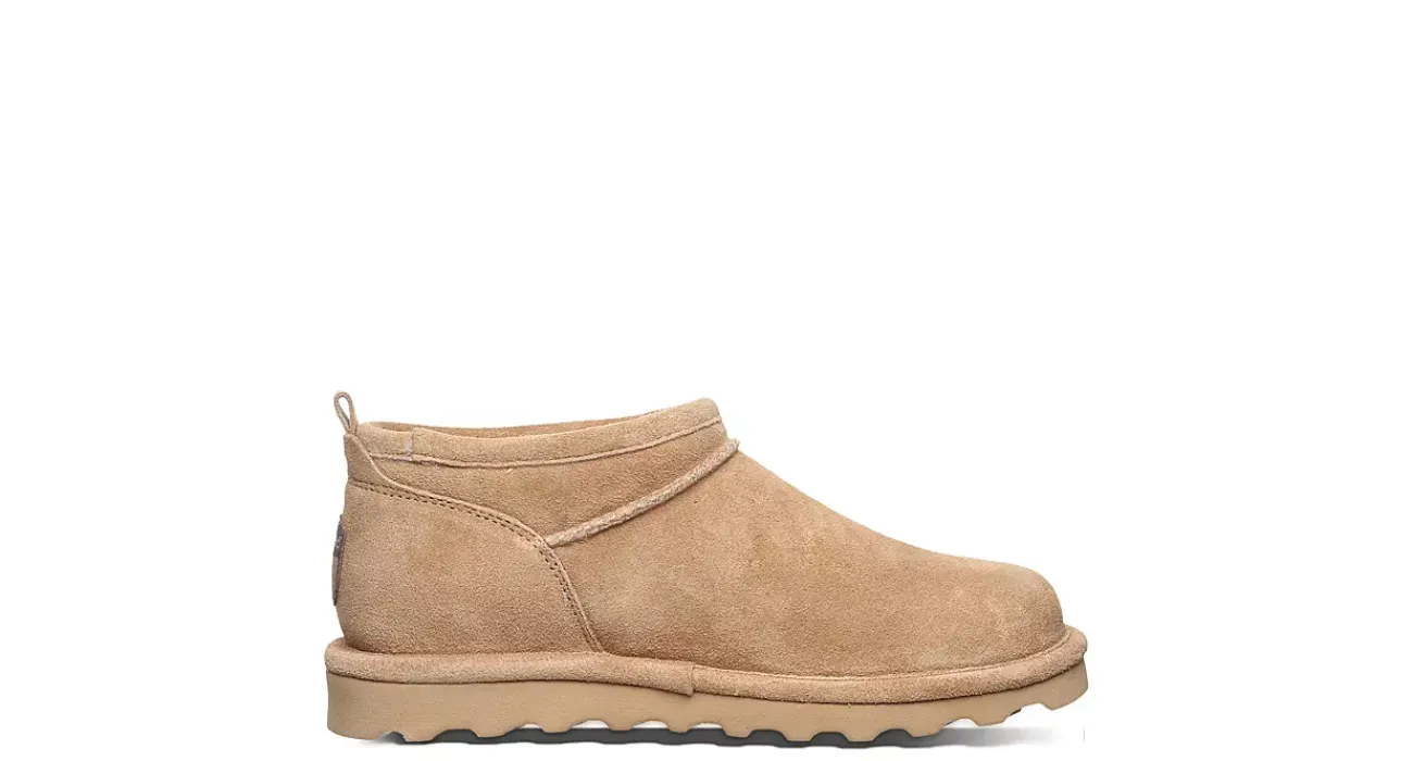 Keep that warm profile lower in the Super Shorty women’s fur boot by Bearpaw. With a suede upper treated with BearCoat™ Rain and Stain Repellent to protect against the elements, this pull-on bootie is still perfect for cold days out and about. The lining & footbed offer warm cushioning while the outsole adds some traction to your unbothered steps.