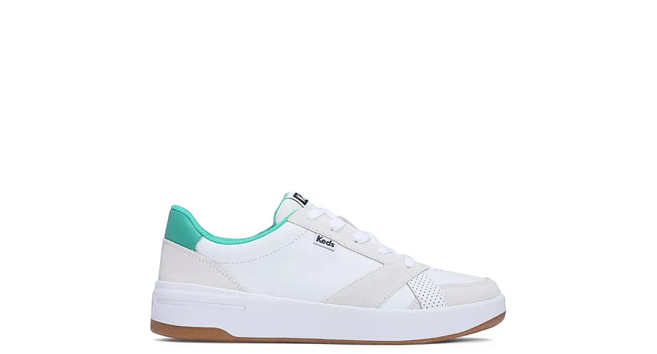 Sport your edge in The Court Leather women’s sneaker from Keds. Featuring a leather upper with a breathable mesh lining and padded collar & tongue, this old-school style has modern comfort inspired by Ked’s tennis heritage. The recycled foam Softerra™ footbed cushions, while the lightweight outsole adds bounce.