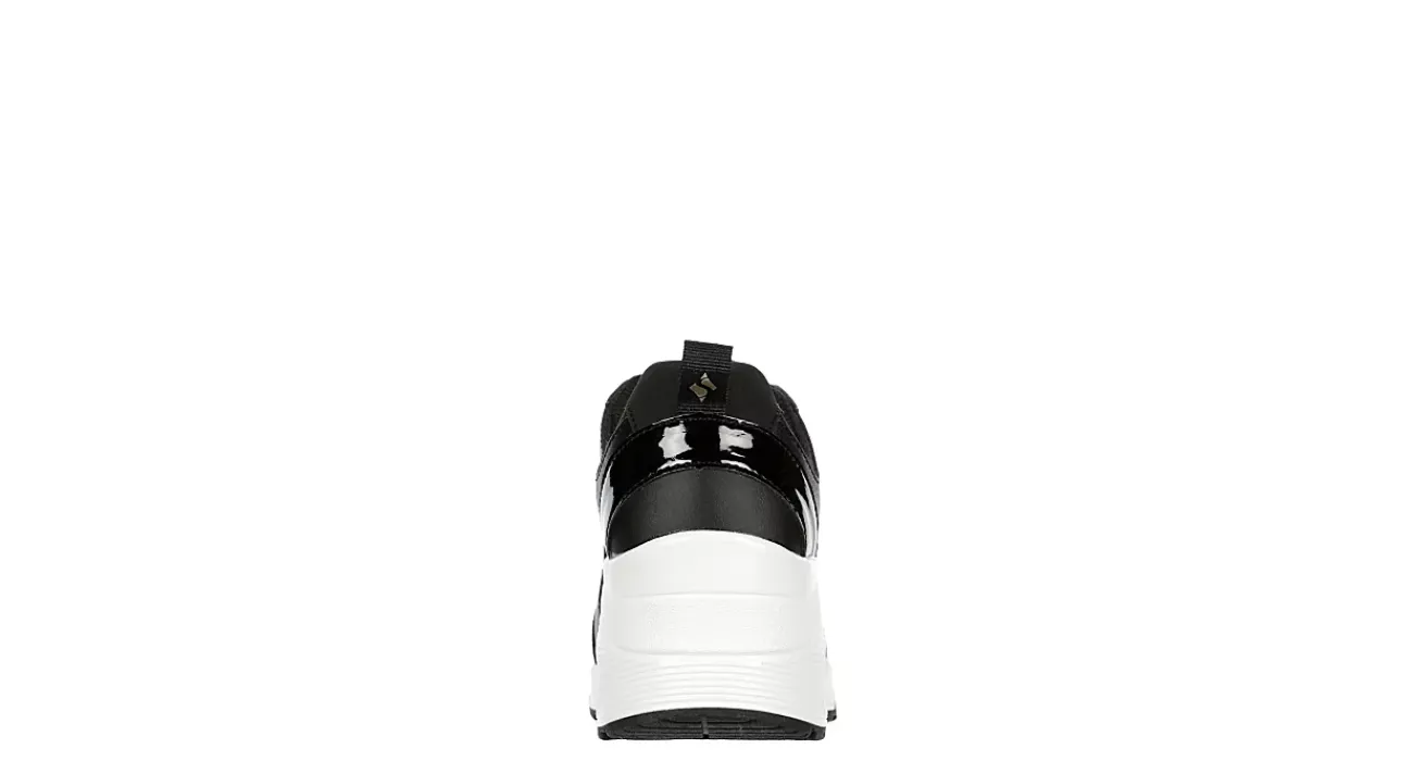 Fashion casual into your style with the Skechers Street Uno Wedge – Everything Nice sneaker. Featuring a duraleather, mesh & leather upper with patent trim, this lace-up sneaker also has a platform wedge for 2″ worth of elevation. The Skechers Air-Cooled Memory Foam® insole and visible Skech-Air® airbag midsole comfort and support your foot, while the outsole provides flexible traction.