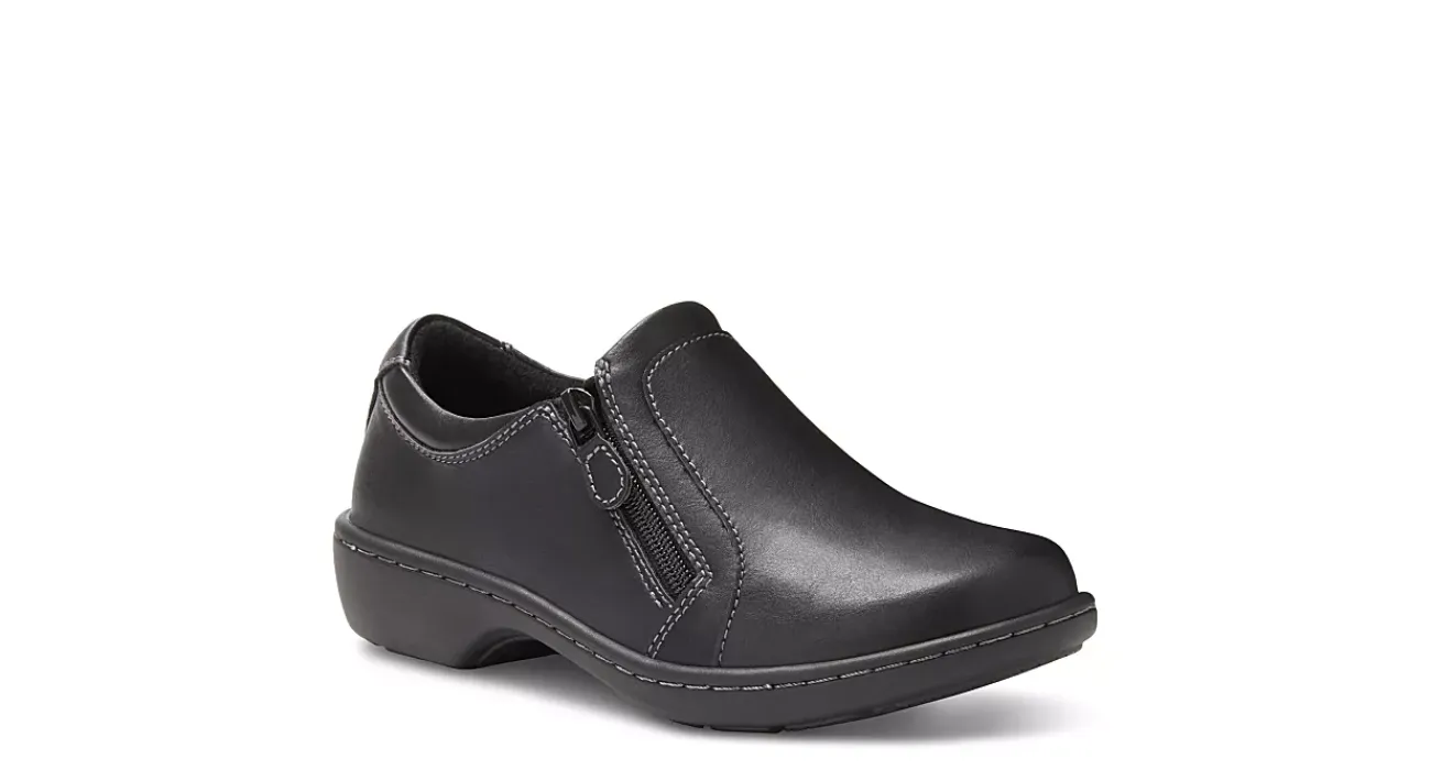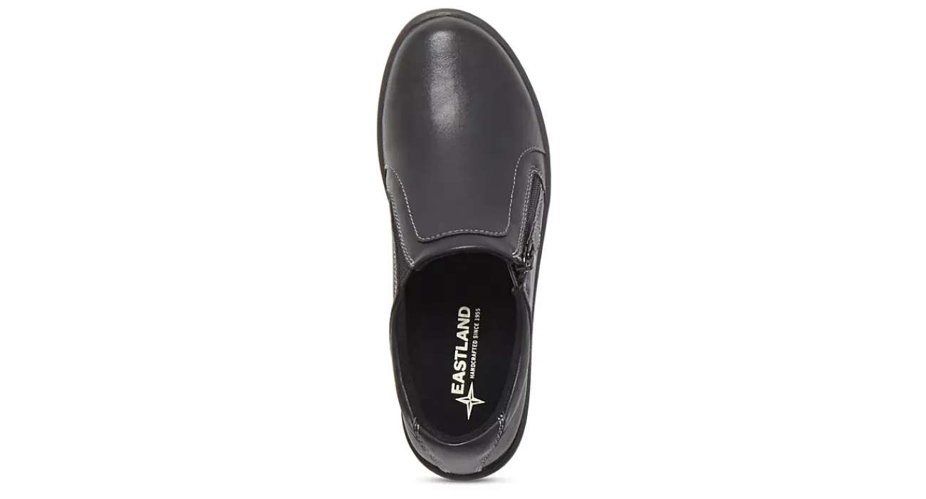 Get casual versatility with the Eastland Vicky women’s loafer. With a faux leather upper featuring a soothing fabric lining, these outside zip loafers slip on for quick comfort to move. The Memory Foam insole provides ample cushioning as you navigate your journey on the synthetic traction sole.