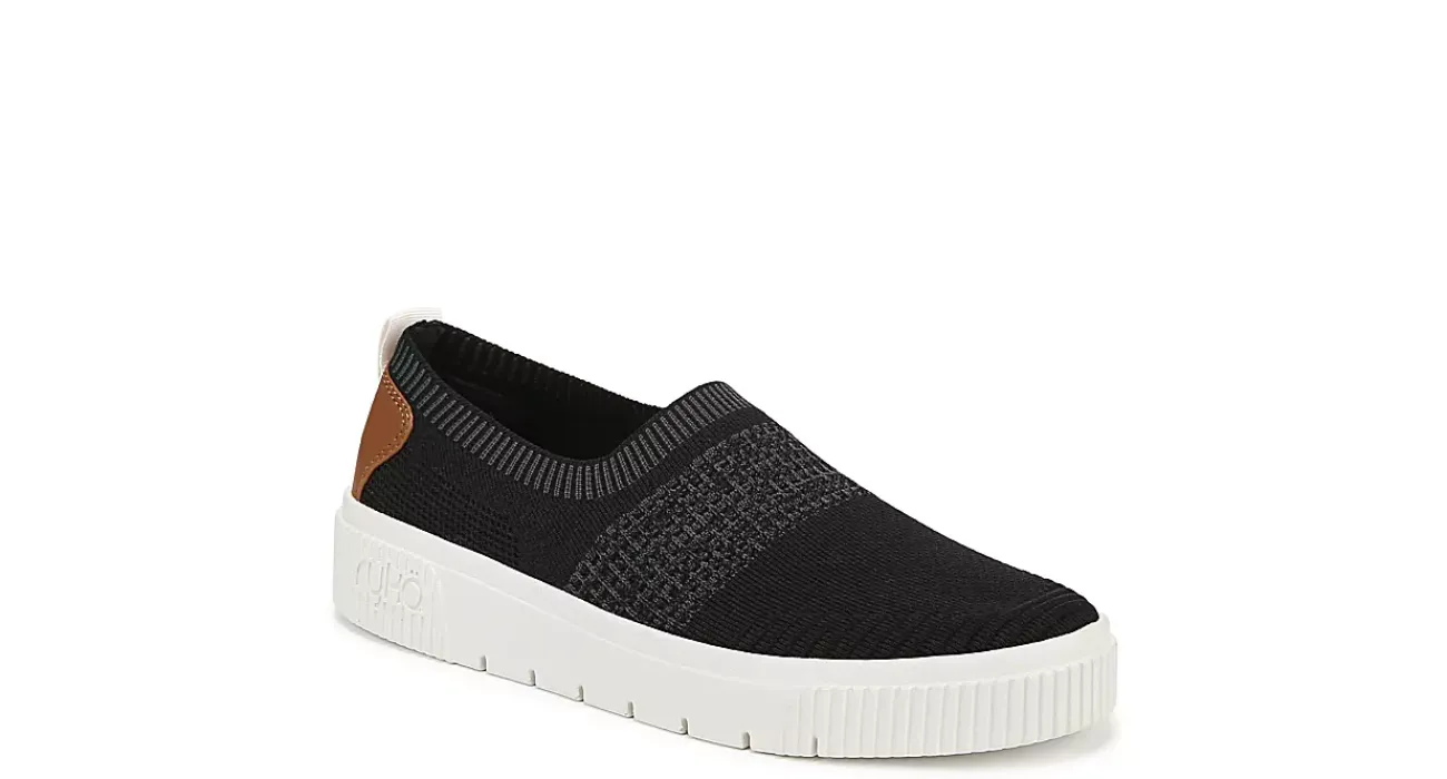Ultimate comfort comes with the Vista slip-on sneaker from Ryka. Designed with a breathable knit fabric upper with a stretch topline, this casual shoe has a Surround Fit insole and cushioned EVA heel cup that supports your foot. The RE-ZORB® outsole has flex grooves for extra durability and flexibility.