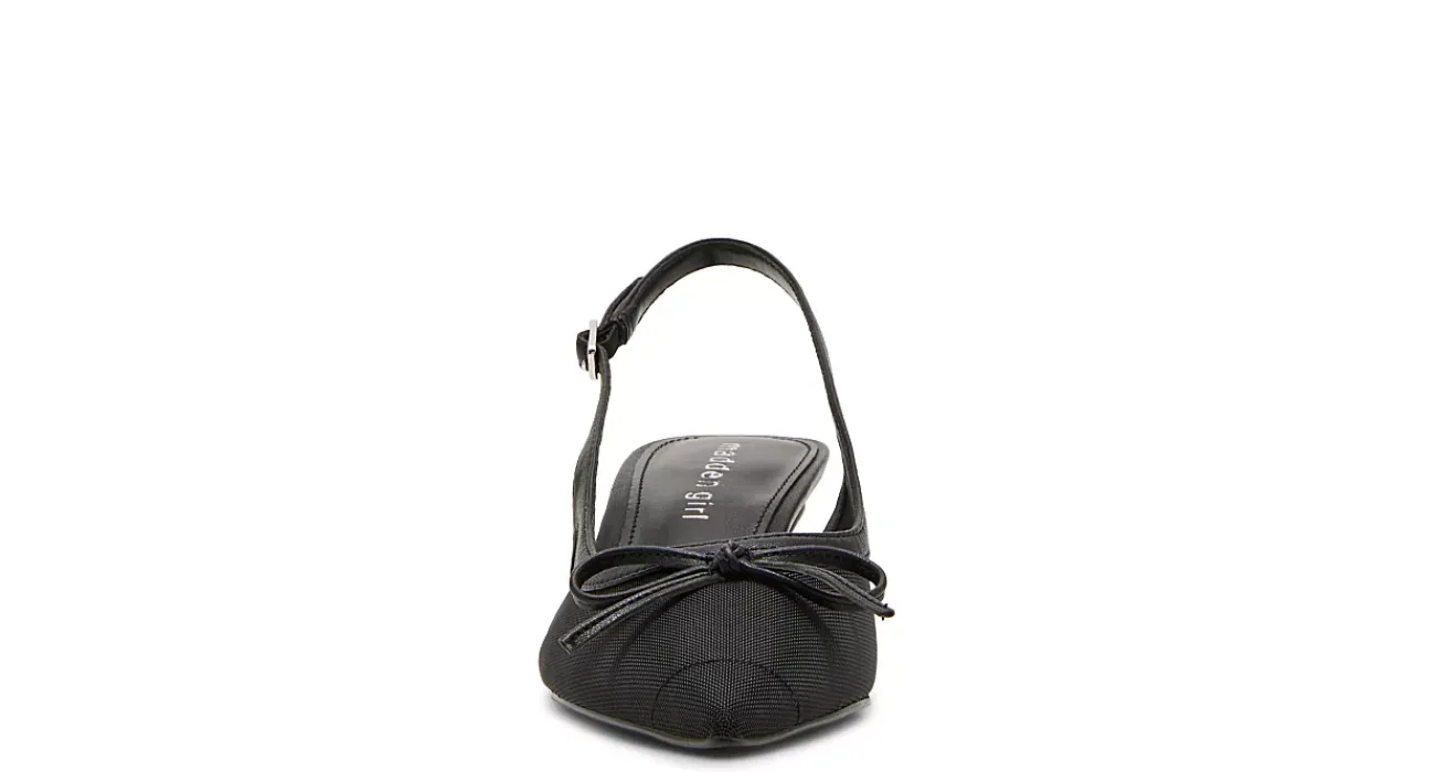 Get ready for your close-up in the Vogue pump from madden girl. Featuring a sheer mesh upper with a dainty bow accent for extra flair, this slingback heel is very dressy. The footbed soothes your foot while the sturdy heel adds nice lift.