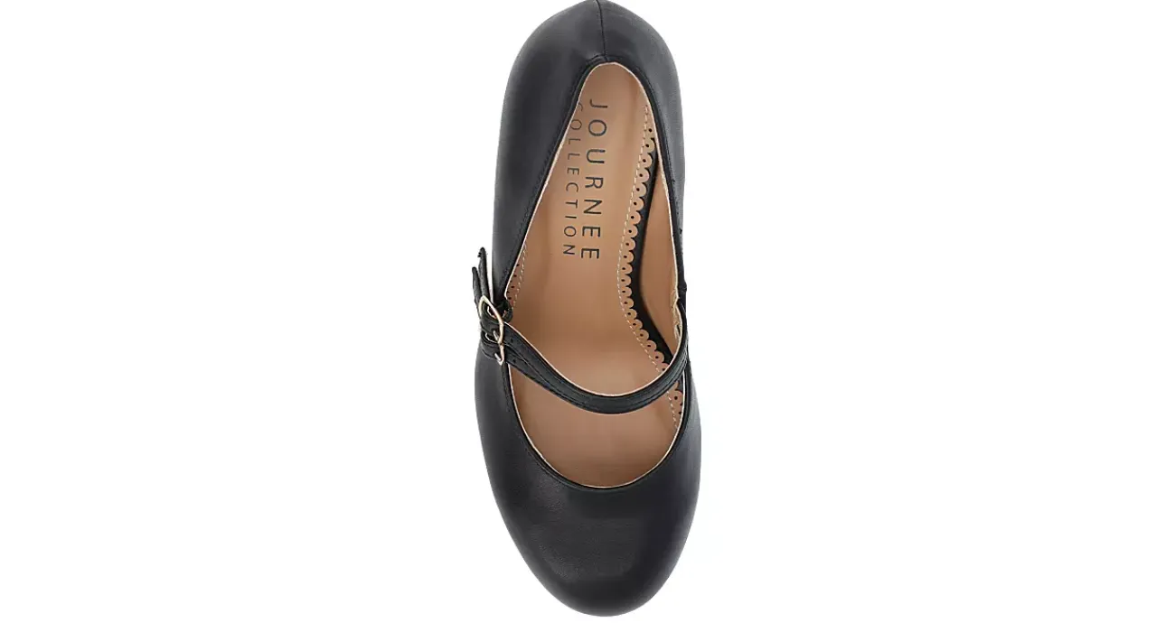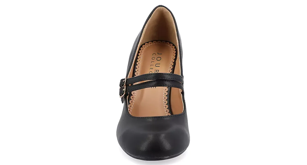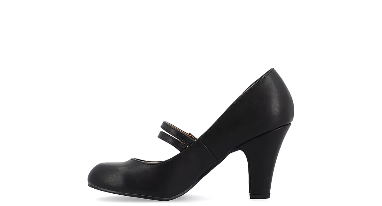 Show off your elegant style with the Wendy women’s pump from Journee Collection. Featuring a vegan leather upper in a midcentury design, this dual buckle strapped Mary Jane has a dainty appeal. The footbed cushions your steps while that high heel is sturdy.