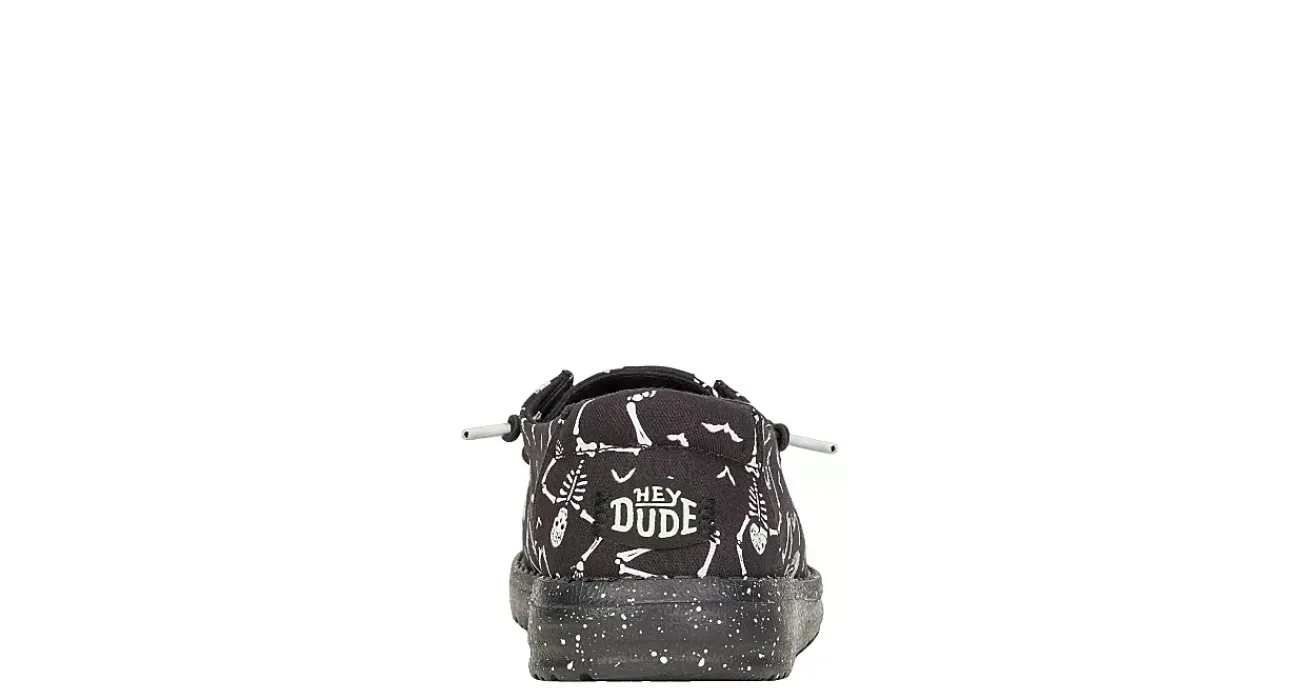 Scare up some style in the HEYDUDE Wendy Skeletons slip-on sneaker. With a glow-in-the-dark printed canvas upper featuring allover skeletons for spooky fun, this cool shoe has a speckled midsole. The removable foam insole offers cushioning while the ultralight outsole sets you free to explore unfettered.