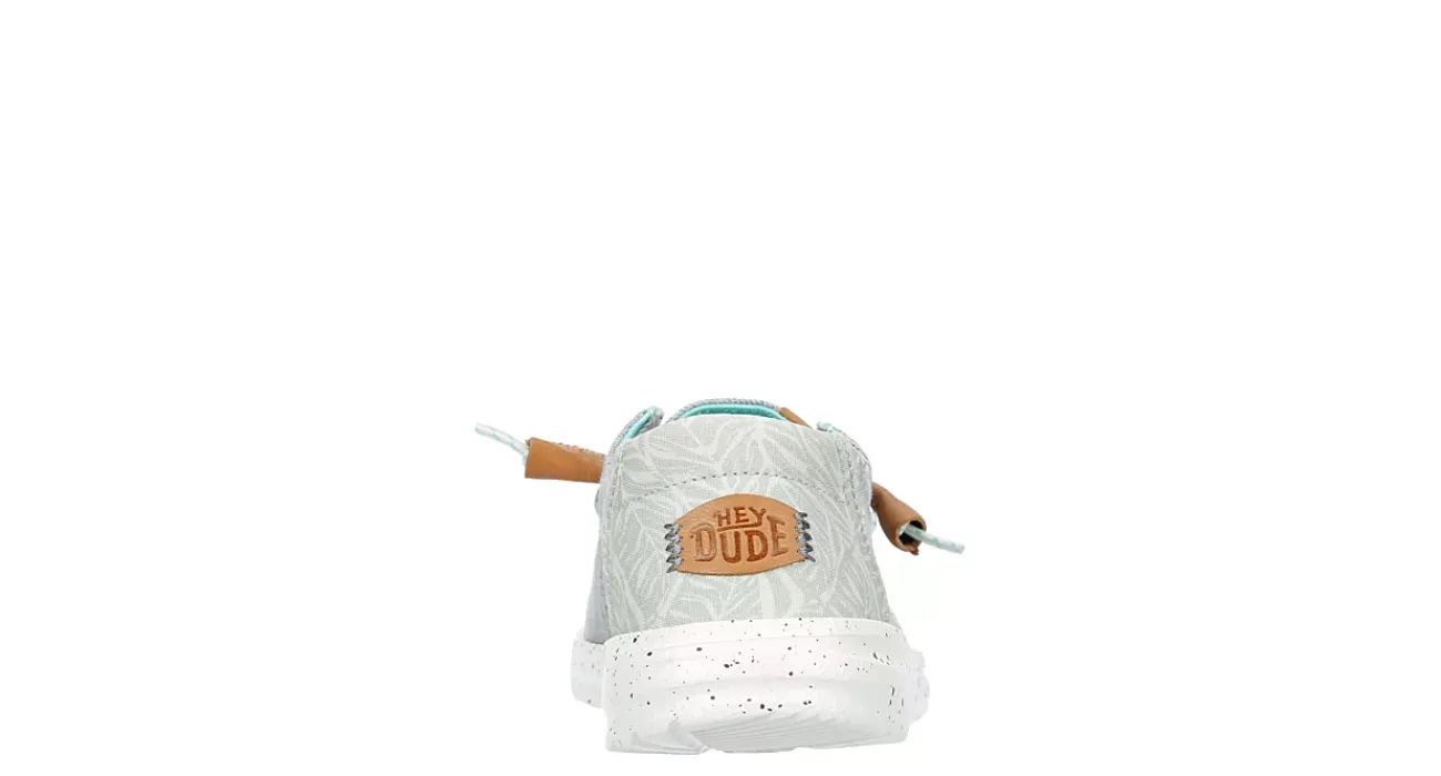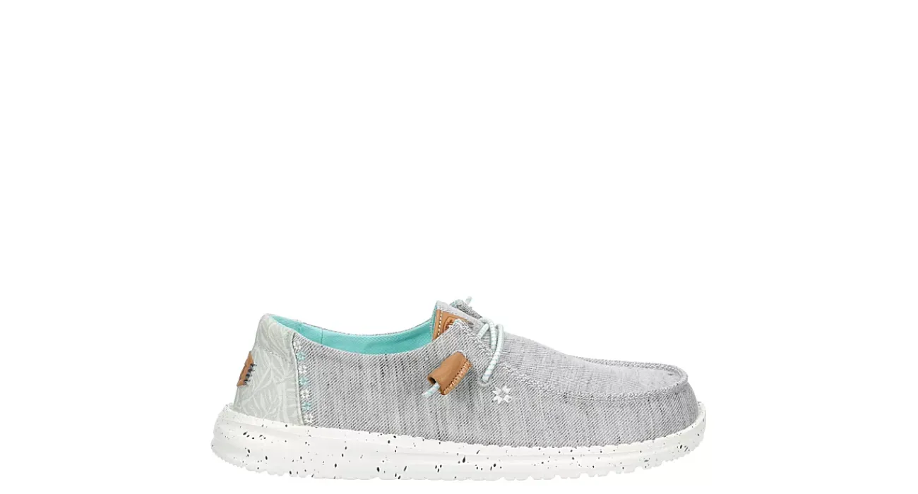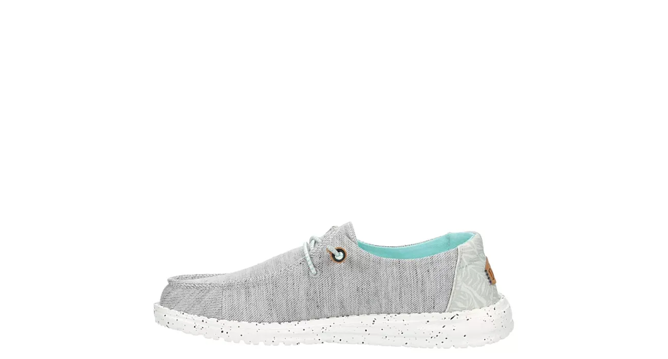 Relax into your passion with the HEYDUDE Wendy Heathered Slub Tropical women’s slip-on sneaker. With a heathered canvas upper featuring a contrasting heel detail, this sneaker also has elastic laces for a secure fit. The removablefoam insole and leather-lining comforts your foot, while the ultralight outsole sets you free to explore unfettered.