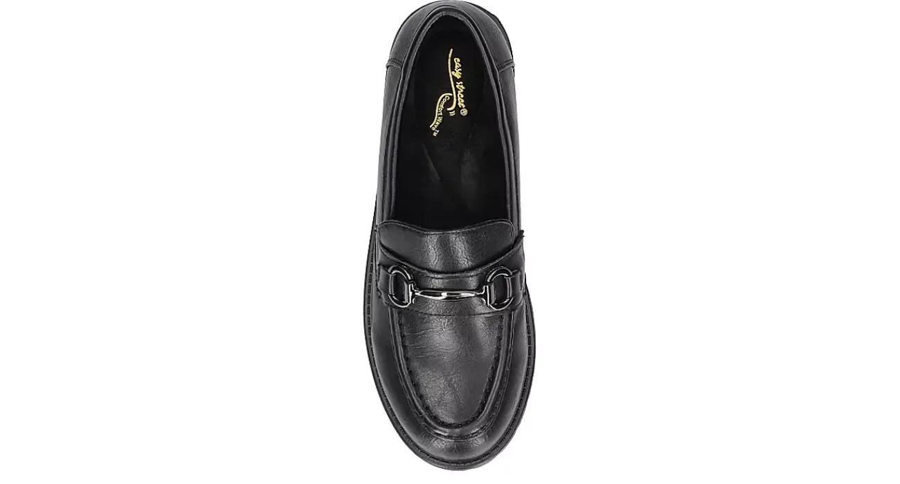 Tailor you look with the cultured Witney loafer from Easy Street. Featuring a faux leather upper with a moc toe and horsebit link for extra style, this slip-on gives classic style some edge. The Easy Motion by Easy Street insole cushions heel-to-toe, while the lug traction makes the low heel even more stable.