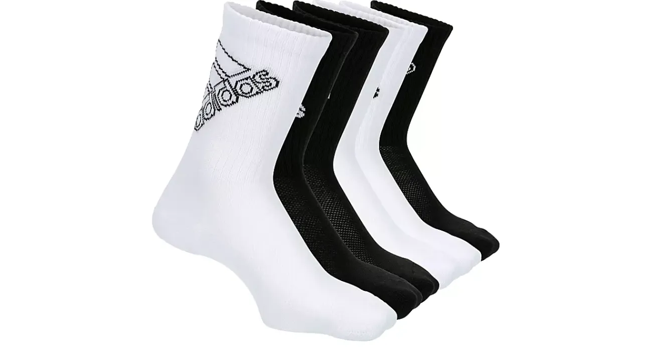 Get in the game with the adidas Cushioned Crew 2.0 socks 6 pack. Created with moisture-wicking fiber to keep feet dry, this sock is cushioned to handle school, play or his favorite sport. And the ribbed cuff helps them stay put while he’s moving.