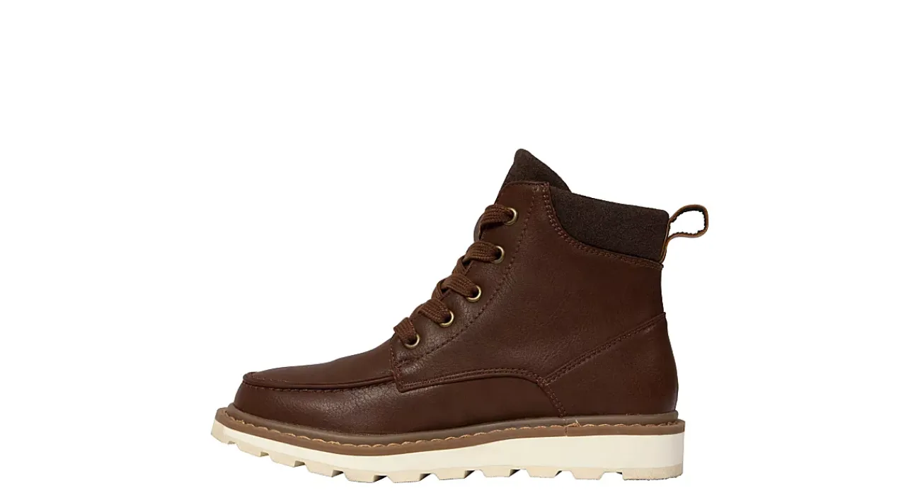 Fall weather is no match for the Deer Stags Julian Jr boot. With a faux leather featuring moc toe stitching and rear pull tab, this lace-up boot hits mid-calf. The insole adds premium cushioning, while the contrasting outsole offers eye-catching traction.