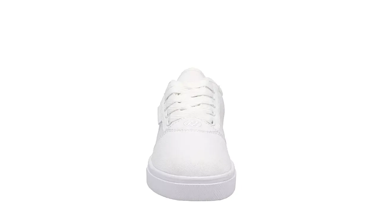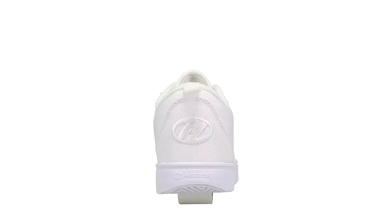 Make his style bolder with the versatile Heelys Pro 20 Triple boys’ sneaker. Featuring an all-white nylon canvas upper with built-in skate option, this lace-up skate shoe also has a removable wheel with a brake pad included in the heel. The padded footbed provides comfort while the outsole helps with durability.