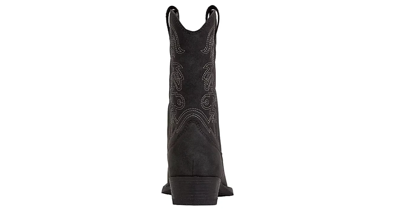 Lasso up some fun with Deer Stags’ Ranch Western boys’ boot. The classic cowboy boot is made from faux leather with western stitching details for authentic style. With the lightly cushioned insole and non-marking rubber outsole, he can spend the day in the stables or at the rodeo and feel comfortable with each step.