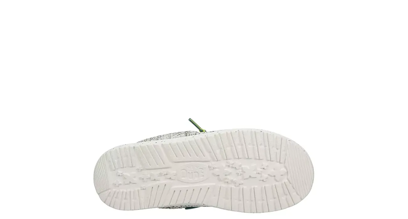 Keep him going in the HEYDUDE Wally Youth Heathered Mesh boys’ slip-on sneaker. With an airy mesh upper featuring elastic laces for a secure fit, this sneaker also has a speckled midsole for extra style. The removable foam insole cushions your foot, while the lightweight outsole provides flexible traction.