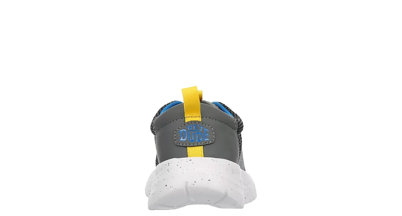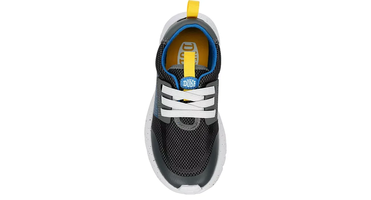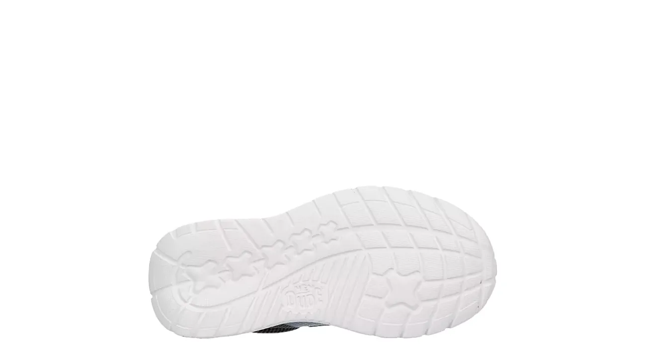He’ll enjoy every step in the HEYDUDE Sirocco Play Youth sneaker. With a colorblock mesh upper, treated with water repellent spray, featuring dual pull tabs for easy entry, this slip-on sneaker is summer ready. The removable insole cushions his foot, while the lightweight outsole keeps him going for hours.