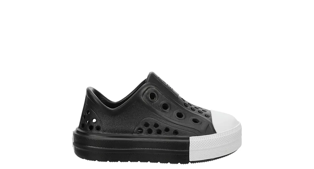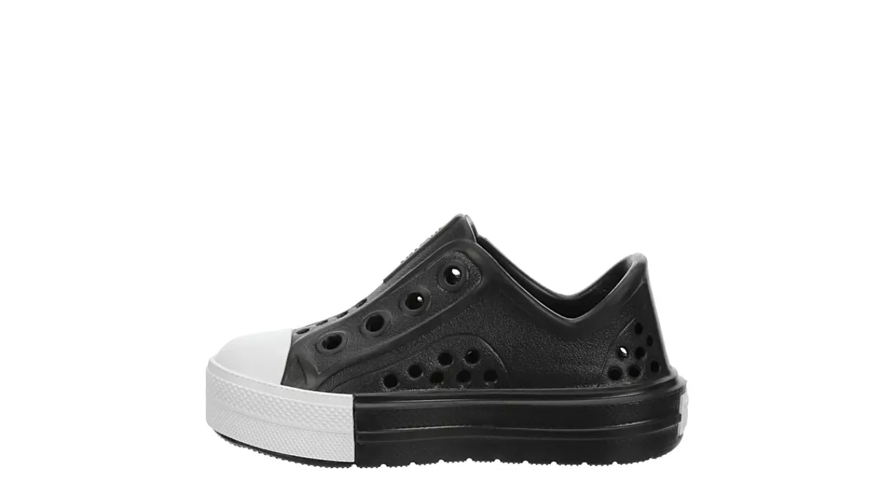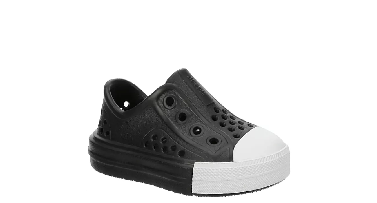 Guarantee fun times ahead with the Chuck Taylor All Star Play Lite CX infant boys’ shoe from Converse. Featuring a colorful CX foam upper with strategically placed vents for breathability, this lightweight slip-on is perfect for summer adventures. Underfoot cushioning supports his play, while flexible outside grooves promote easy movement.