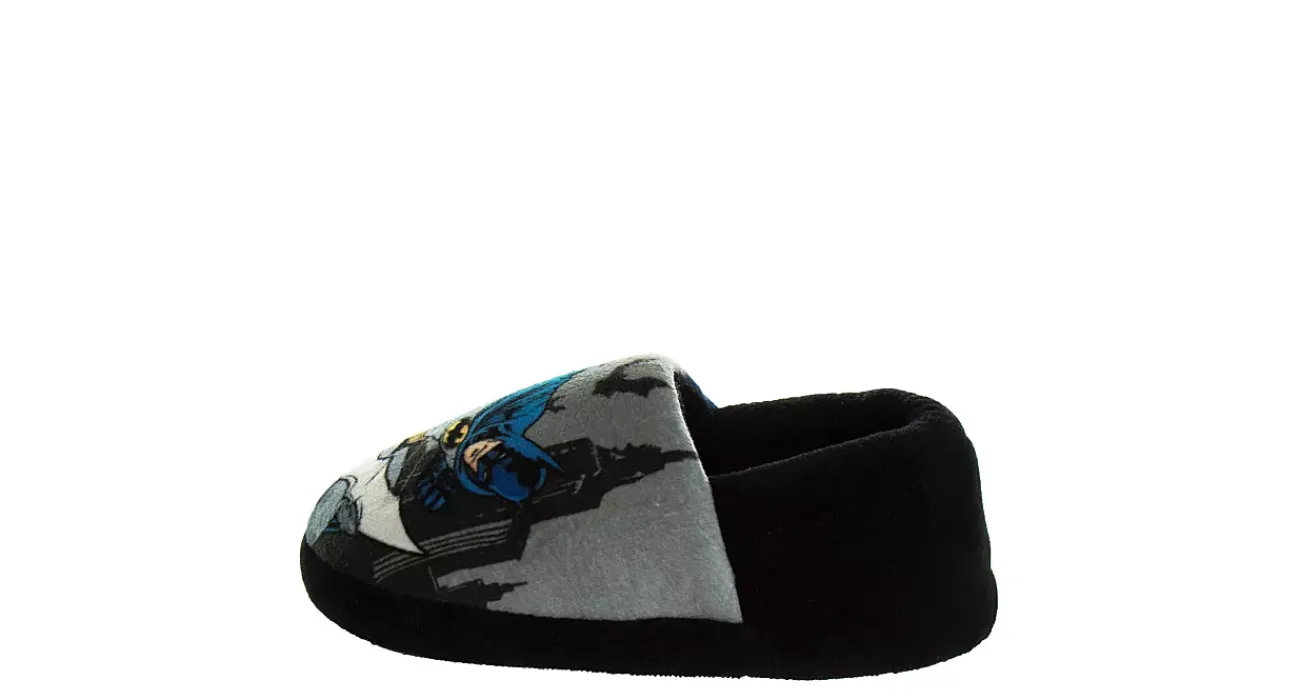 Wrap his little feet in caped crusading fun with the Batman infant boys’ slipper. Featuring a fabric upper with a prominent Batman graphic and a plush trim & lining, this slipper is perfect for lounging. The footbed cushions while the textured outsole offers non-slip grip.