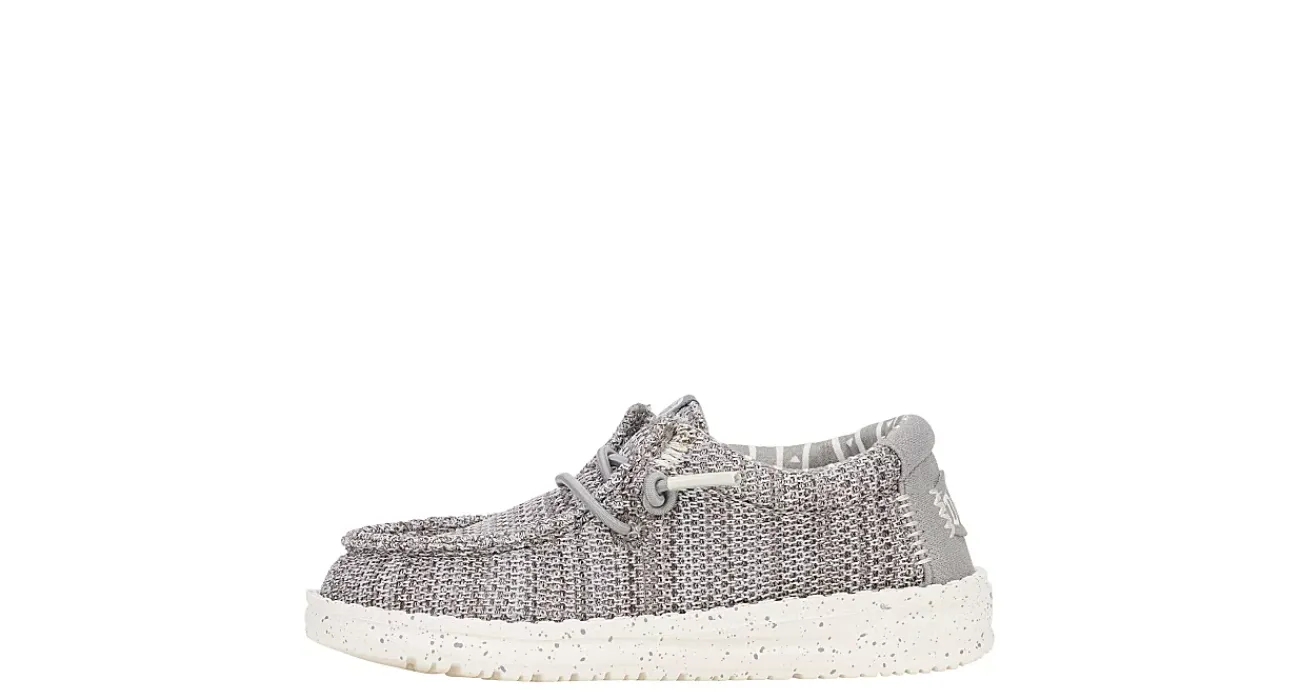 Keep him going in the HEYDUDE Wally Toddler infant boys’ slip-on sneaker. With an airy, stretch mesh upper featuring elastic laces for a secure fit, this shoe also has a speckled midsole for extra style. The removable foam insole cushions his little foot, while the lightweight outsole provides flexible traction.