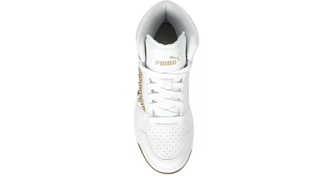 Help your little girl improve her style in the PUMA Rebound LayUp SL JR girls’ sneaker. With a faux leather upper featuring a comfy padded collar and delicate gold-toned charm chain, this lace-up shoe looks great with jeans or skirts. The SoftFoam+ footbed cushions her feet, while the outsole offers bouncy traction.