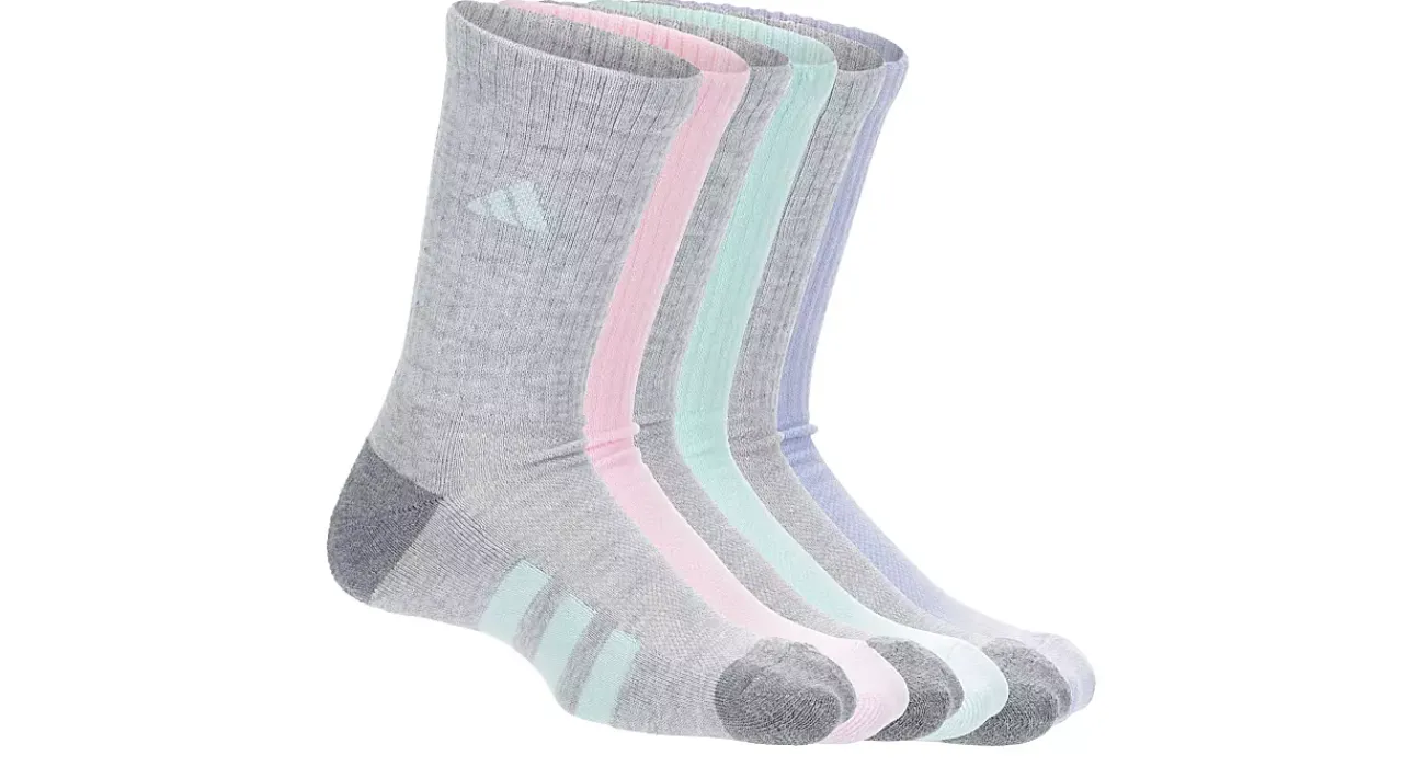 Tough workouts deserve the Cushioned Crew men’s socks from adidas underfoot. This 6-pack delivers a cushy comfort footbed with sweat-wicking climalite® to help keep feet dry. The fabric is light and breathable in a crew style with signature adidas branding to complete your look.